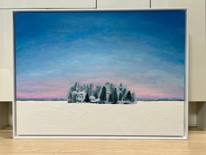 여러분은 무엇으로 삶을 기록하시나요? 란작가는 일상의 순간을 자신만의 방식으로 캔버스 위에 기록합니다. 이번 작품은 여행의 순간을 그림 그린 것입니다. 이러한 기록의 행위는 작가에게 따뜻한 위안을 주는데요, 작가는 그림을 그림으로써 지난 감정들에 대한 성찰의 시간을 가지게 되고, 이 과정이 참 행복하다고 느끼기 때문입니다. 이어, 작가는 작업의 현장에서 느낀 행복을 대중들과 나누고 싶어 합니다. 그런 따뜻한 시선이 담겨서인지 눈밭으로 뒤덮인 땅과 그 위에 가냘픈 몸의 나무가 마냥 차갑거나 외로워 보이지 않는 것 같습니다. 작품을 보고 있으면 마치 작가와 같이 여행을 다녀온 후에 그 순간을 추억하는 기분마저 듭니다. 반복되는 삶에 지쳤다면, 잠시 새하얀 풍경을 마주하며 지난날의 순간을 회상하거나 다녀온 여행 이야기를 대화로, 그림으로 혹은 글로 기록하는 시간을 가져보는 건 어떠신가요?