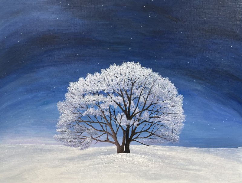여러분은 무엇으로 삶을 기록하시나요? 란작가는 일상의 순간을 자신만의 방식으로 캔버스 위에 기록합니다. 이번 작품은 여행의 순간을 그림 그린 것입니다. 이러한 기록의 행위는 작가에게 따뜻한 위안을 주는데요, 작가는 그림을 그림으로써 지난 감정들에 대한 성찰의 시간을 가지게 되고, 이 과정이 참 행복하다고 느끼기 때문입니다. 이어, 작가는 작업의 현장에서 느낀 행복을 대중들과 나누고 싶어 합니다. 그런 따뜻한 시선이 담겨서인지 눈밭으로 뒤덮인 땅과 그 위에 가냘픈 몸의 나무가 마냥 차갑거나 외로워 보이지 않는 것 같습니다. 작품을 보고 있으면 마치 작가와 같이 여행을 다녀온 후에 그 순간을 추억하는 기분마저 듭니다. 반복되는 삶에 지쳤다면, 잠시 새하얀 풍경을 마주하며 지난날의 순간을 회상하거나 다녀온 여행 이야기를 대화로, 그림으로 혹은 글로 기록하는 시간을 가져보는 건 어떠신가요?
