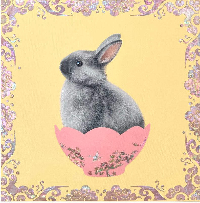 시소 작가는 찻잔에 토끼, 병아리, 그리고 오리와 같이 우리 주변을 채우는 존재를 담습니다. 이처럼 작가는 찻잔 안에 다양한 이미지를 담음으로 소중한 이웃을 상기시킵니다. 이는 찻잔 속 존재 곧 자연에 대한 생각과 관심, 그리고 존중을 요구하는 정중한 부탁이라고도 할 수 있을 것 같습니다. 부드러운 색채와 결이 살아있는 세밀한 붓 터치로 감상자에게 심미적 아름다움을 주는 동시에 자연에 대한 존중과 사랑을 전달하는 작품으로, 여러분의 공간을 아름답게 채워보는 것은 어떠실까요?