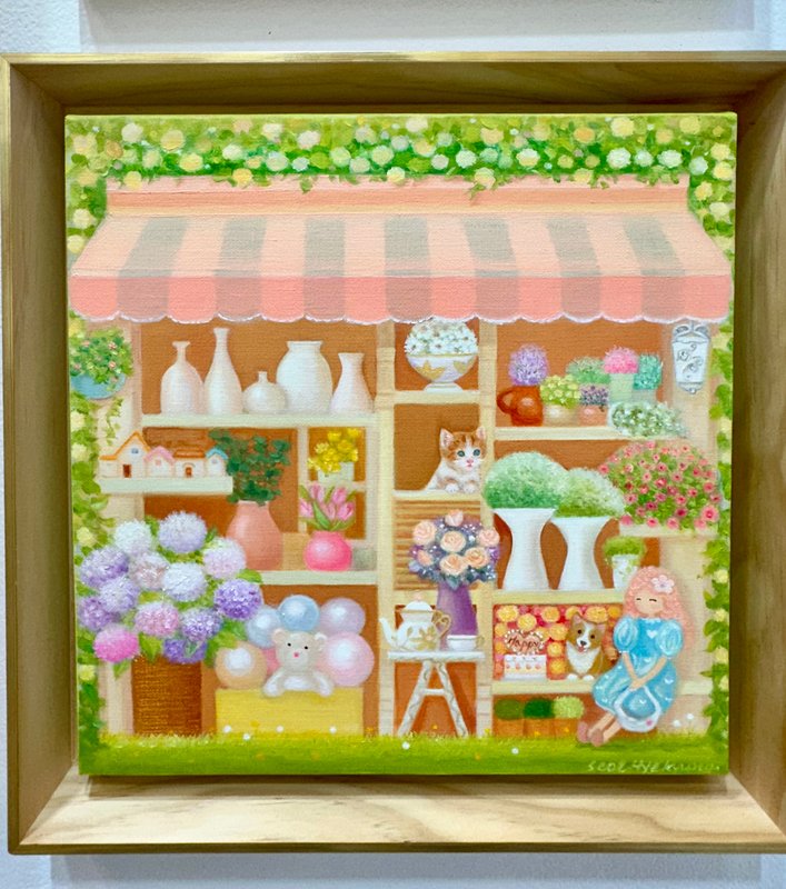 설혜경 작가는 일상적인 사물에 식물을 병합한 비현실적 재현을 통해 사물의 기능에서 연상되는 안온한 휴식의 세계로 초대한다. 작품에 등장하는 의자는 사실상 우리가 익히 알듯이 자연스럽고 편한 휴식의 자세를 취할 수 있도록 만들어진 가구이다. 작가는 사물의 기능에 대한 인상을 발전시켜 안식과 평안에 관한 이미지를 떠올리게끔 구성하여 제시하고 있다. 특히 유선형의 식물로 에워싸인 의자의 모습은 마치 하나의 유기체처럼 가만히 숨 쉬고 움직이는 듯하다. 작가의 의자와 사물들은 단순한 기능 이상의 것을 전달하는데, 휴식을 얻기 위해 찾아온 누구에게나 아낌없는 정서적 환대를 보내는 작가의 숨은 지향을 알아차릴 수 있다. 작품을 통해 보는 이를 보듬으며 정화된 마음, 자연스럽고 안정적인 마음의 자세로 되돌릴 수 있도록 초대한다.