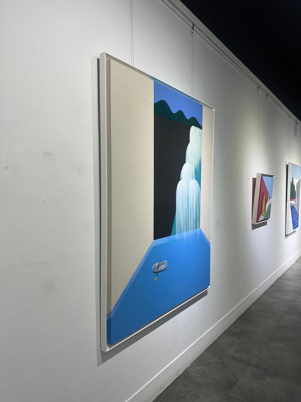 그랜드 캐니언의 건물 안의 모습을 표현한 작품으로, 김예진 작가는 자연을 보며 느꼈던 웅장함을 현대 사회의 건축물에 투영하여 바라봅니다. 작가는 에스컬레이터의 대각선에서 영감을 받아 평면과 대각선의 긴장감과 조화로움에 대해 연구하며 '대각선' 그 자체에 흥미가 생겼고, 작품의 캡션을 보면 작품명에도 모두 대각선이 쓰인 것을 발견할 수 있습니다. 작가는 이러한 작은 요소를 찾는 것에 대해서도 재미를 느꼈으면 좋겠다고 전합니다.