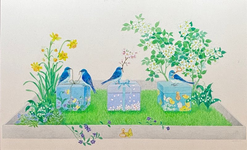 고운 포장지와 잘 다듬은 꽃들로 소중한 이를 위해 마련한 선물 같은 작품들입니다. 희망의 메시지를 전하고 있는 아름다운 새들의 모습은 마치 살아 움직이는 듯합니다. 선물 안에 담긴 것은 물질적인 것뿐만 아니라, 개개인이 중요하게 생각하는 소중한 감정들이나, 무심코 지나쳐서 선물이라 느끼지 못했던 순간들이라고 작가는 이야기합니다. 마치 선물 같은 순간과 기억들을 서정적으로 담아내어 관람자들로 하여금 소중했던 추억을 떠올리게 만듭니다. 지치고 힘든 나날들이지만, 이상은 작가의 작품으로 사랑하는 이에게 따스한 공감과 위로를 건네보는 것은 어떨까요?