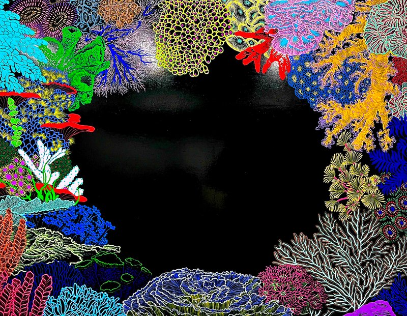 어른이 되어 어린 시절 동심을 그리워해 본 경험이 있으신가요? 팍팍한 사회생활을 하며 앞만 보고 나아가기에 바쁜 우리는 한가하게 순수했던 어린 시절을 추억할 여유가 거의 없습니다. 박선하 작가는 이러한 우리 삶에 알록달록한 산호가 그려진 작품을 보여주며, 잠시 잊고 살던 동심을 돌아보게 합니다. 자신의 마음속 동심을 돌아보고 어린 시절에 가졌던 열정, 순수함, 그리고 행복을 되새기다 보면, 다시 앞으로 나아갈 힘을 얻고 잠시나마 미소 지을 수 있을 것입니다. 작품 속 어두운 바다에서 밝게 자기 모습을 뽐내는 산호의 모습은 그 자체로 우리에게 위안이 되기도 합니다. 현실 속 삶이 지치고 힘들 때, 박선하 작가의 작품을 보며 작은 위로를 얻어가시면 좋을 것 같습니다.