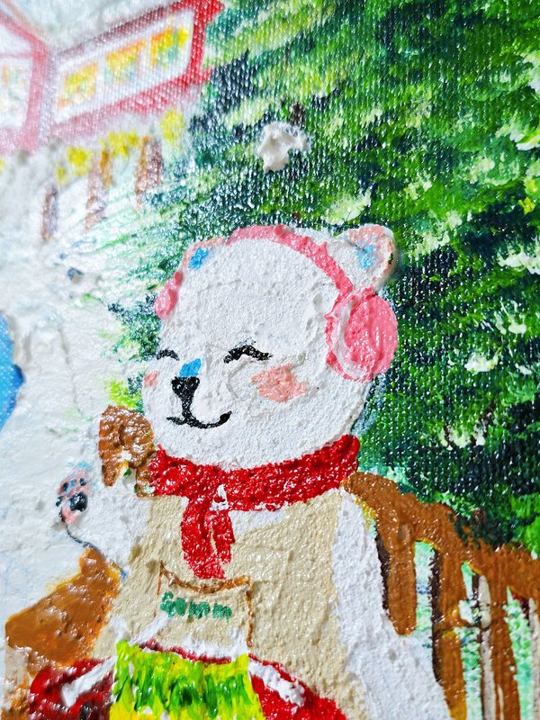 이그린 작가는 인간의 무분별한 욕심으로 인해 망가져 가는 자연을 보며 느끼는 안타까운 감정을 작품에 표현한다. 기후 변화 등 환경 문제로 멸종위기에 처한 북극곰을 주인공으로 한 '곰지맘 시리즈'는 그러한 의도를 잘 보여주는 작가의 대표작이다. 선명한 색감과 거친 질감을 이용하여 날 것 그대로의 자연을 생동감 있게 그려내는 작가만의 표현법이 돋보인다. 작가는 아크릴화로 작업을 시작하여 그 위로 젤 스톤과 모델링 페이스트를 덮는 콜라주 기법으로 작품을 완성한다. 젤 스톤은 돌가루가 섞여 거친 질감 표현에 적합한 보조재로, 작가는 다양한 소재를 활용하여 더욱 역동적인 질감으로 자연의 아름다움을 표현하고자 하였다. 주제에 맞게 고안한 작가만의 표현법으로, 우리에게 환경과의 공존에 관한 아름답고 희망적인 이야기를 전해온다.