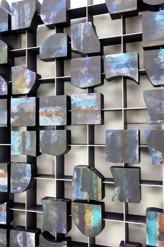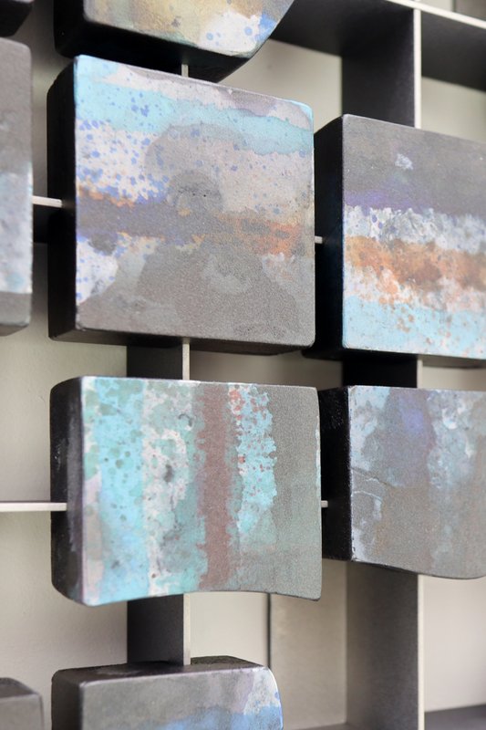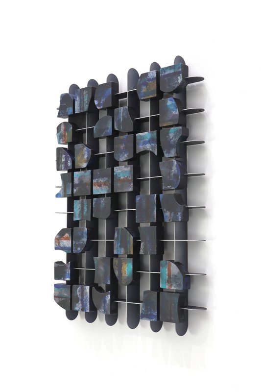 박용호 작가의 작품에서 질서와 생동감이 동시에 느껴지는데요. 수많은 파편들이 모여서 연속된 관계, 그리고 상호작용을 보여줍니다. 우리는 여러 존재들과 관계를 맺습니다. 개별의 관계들은 서로 관계를 맺어 하나의 결과를 도출하고, 그 결과는 또다시 개별 과정이 되면서 관계는 무한히 반복되고 확장됩니다. 작가는 이러한 관계성에 대한 이야기를 하고자 작품에서 수많은 조각들을 등장시킵니다. 개별의 조각들이 반복적으로 나열되며 결합된 것을 볼 수 있는데요, 이는 관계가 상호작용을 하면서 하나의 작품으로 완성되었다는 것을 알 수 있습니다. 반복 속에 색의 미묘한 변화와 조각의 묘한 움직임을 느끼면서 우리의 존재와 관계에 대해 조용히 곱씹어 보는 시간을 가져보는 것은 어떠신가요?