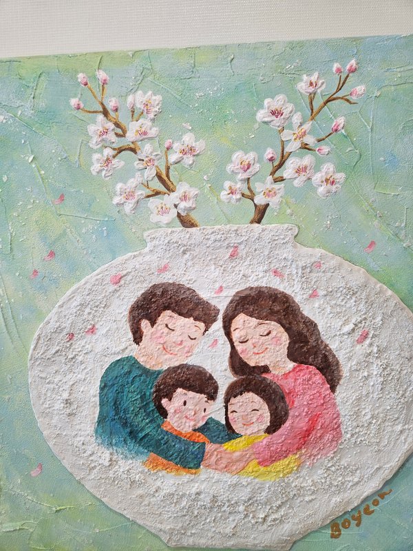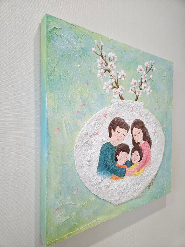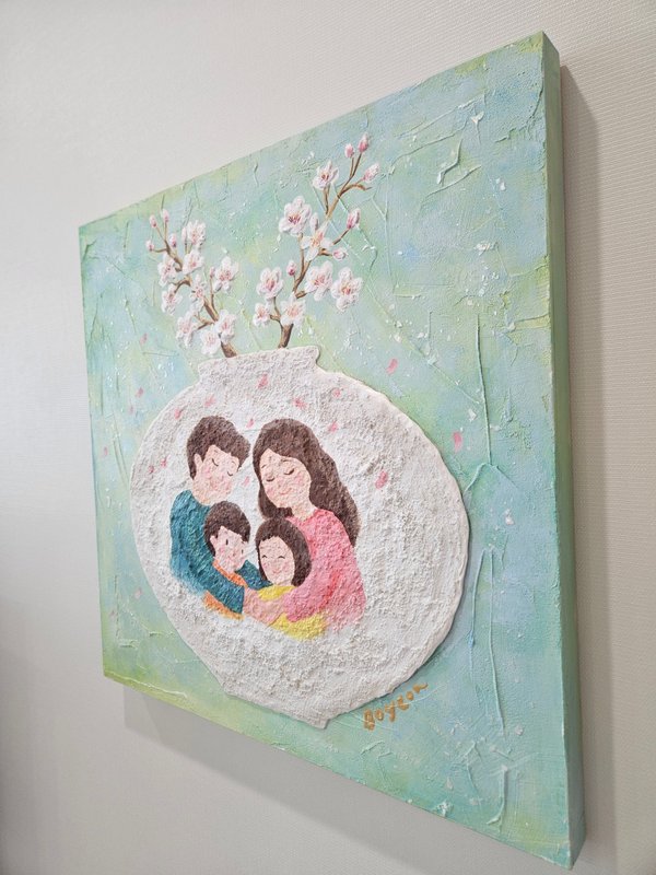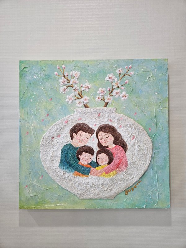 작품 특유의 순수함으로 편안하고 서정적인 분위기를 연출하고 싶은 공간에 추천합니다. 항상 미소 짓는 작품 속 인물들은 우리를 위로해 줍니다. 그리고 다채로운 색상은 아이가 지니는 밝음과 통하며 우리를 동심으로 돌아가게 합니다. 김보연 작가님의 작품은 인물들의 잔잔한 미소처럼 공간을 은은하게 밝혀옵니다. 캔버스 속 어린아이의 직접적인 등장 외에도 화풍에서 엿볼 수 있는 어린아이의 흔적은 우리가 지나온 천진성과 바라왔던 이상적인 가족을 떠올리게 합니다. 이렇게 불러온 동심으로, 감상자는 현재에 평온함을 느끼고 밝은 미래를 기대할 수 있습니다. 작품이 주는 편안함을 통해 잊고 있던 삶에 대한 예찬을 떠올려 하루하루를 힘차게 살아갈 희망을 품게 합니다.