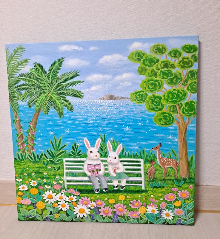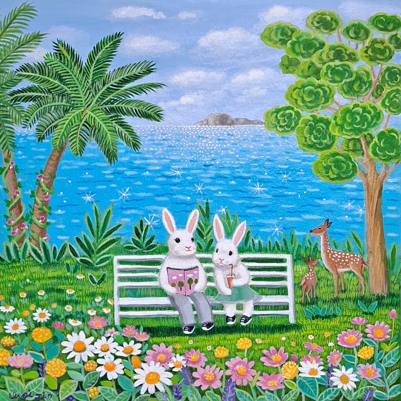 최진 작가는 만개한 꽃의 정원 속 인간과 동물들이 함께하는 유토피아를 꿈꾸며, 동화처럼 아름다운 세상을 작품으로 그려냅니다. 인간과 동물의 생활 반경이 명확히 구분되어 있는 현실과 달리, 화폭 속 알록달록한 색상의 정원에는 모든 생명체가 자연스럽게 어우러져 있습니다. 그는 바쁜 나날 속 회색빛 콘크리트 도시처럼 색 바랜 현대인의 내면을 푸른 들판에 피어난 꽃송이처럼, 다채로운 색으로 가득 채우고자 했습니다. '휴일', '파라다이스', '행복' 등 작품의 제목에 사용된 단어에서 엿볼 수 있듯, 최진 작가의 캔버스는 동산 위를 뛰어노는 어린아이의 순수한 마음처럼, 즐거움으로 만개해 있습니다. 입가에 은은한 미소를 선사하는 그의 작품을 통해, 오늘의 나에게 작은 휴식을 선물해 보세요.