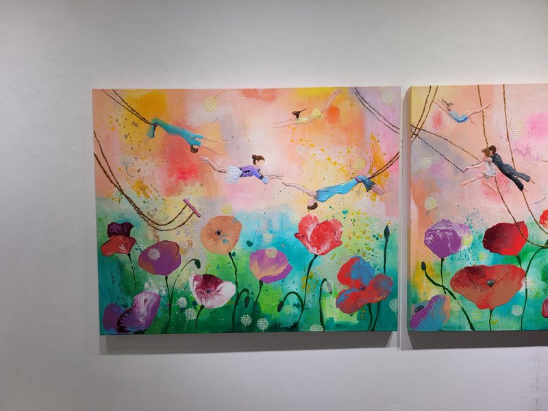박현아 작가가 그리는 작품의 주제는 애정하는 사람에게 늘 전하고 싶은 선물, 응원, 사랑이다. 박현아 작가는 내향적인 성격이지만 사람을 좋아한다. 그 성격 덕에 작가는 언어로 마음을 전달하기보다, 시각적으로 다정함을 전하는 것이 더 익숙해 보인다. 작가는 사랑하는 이들에게 다정함을 선물하는 마음으로 위안과 평안을 담는 그림을 그린다. 작가는 또한 다정함을 표현하기 위한 수단으로 재료가 주는 물성에서 영감을 얻는다. 그는 아크릴을 비롯해 다양한 질료와 레진 등을 사용하는데, 이러한 풍부한 재료 사용으로 인해 감상자는 그림 속에 다정함과 사랑이 한껏 넘치는 느낌을 받는다. 작가는 그림을 보는 이로 하여금 설명 없이도 그림에 표현된 사람에 대한 사랑, 사람 그 자체로 반짝이는 순간들을 함께 느낄 수 있길 기대하는 것이다. 이처럼 작가는 일상을 살아가며 느끼는 감각 속에서 항상 사람을 떠올린다. 늘 사람을 마음속에 품고 있는 박현아 작가의 작품을 바라보고 있자면 감상자 역시도 현재를 함께하는 소중한 사람들이 눈앞에 그려지는 경험을 할 수 있을 것이다.