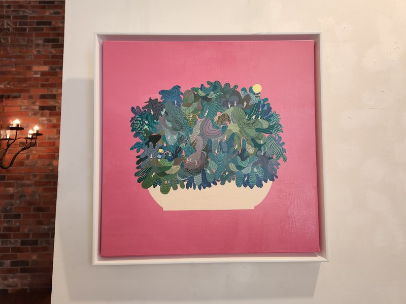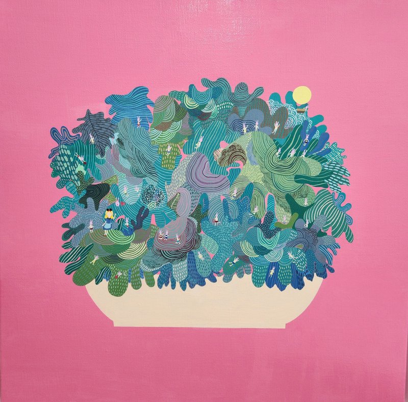 여러분은 여러분만의 상상 속 공간이 있으신가요? 누구나 어릴 적 한 번쯤은 자신만의 상상 세계에서 공상을 펼친 경험이 있으실 텐데요, 조은정 작가는 자연과 바람을 느끼며 상상한 공간을 화폭으로 옮겨와, 그 안에서 자유와 희망을 노래합니다. 작품 속 흥미로운 점은 작가가 느낀 삶 속 다양한 감정이 여러 이미지로 나타나 하나의 덩어리로 형상화되었다는 것인데요, 알록달록한 색채와 숨은그림찾기 하는 듯 아기자기한 이미지는 시각적 즐거움을 선사하며, 보는 이의 상상을 자극합니다. 이처럼 '꿈속 세상'은 감상자의 참여를 적극 끌어들임으로 지속적으로 세계를 확장시키는 매력적인 작품입니다. 공간에 창의력을 더하고 싶으신가요? 조은정 작가의 작품으로 머리에 새로운 자극을 주는 건 어떠신가요?