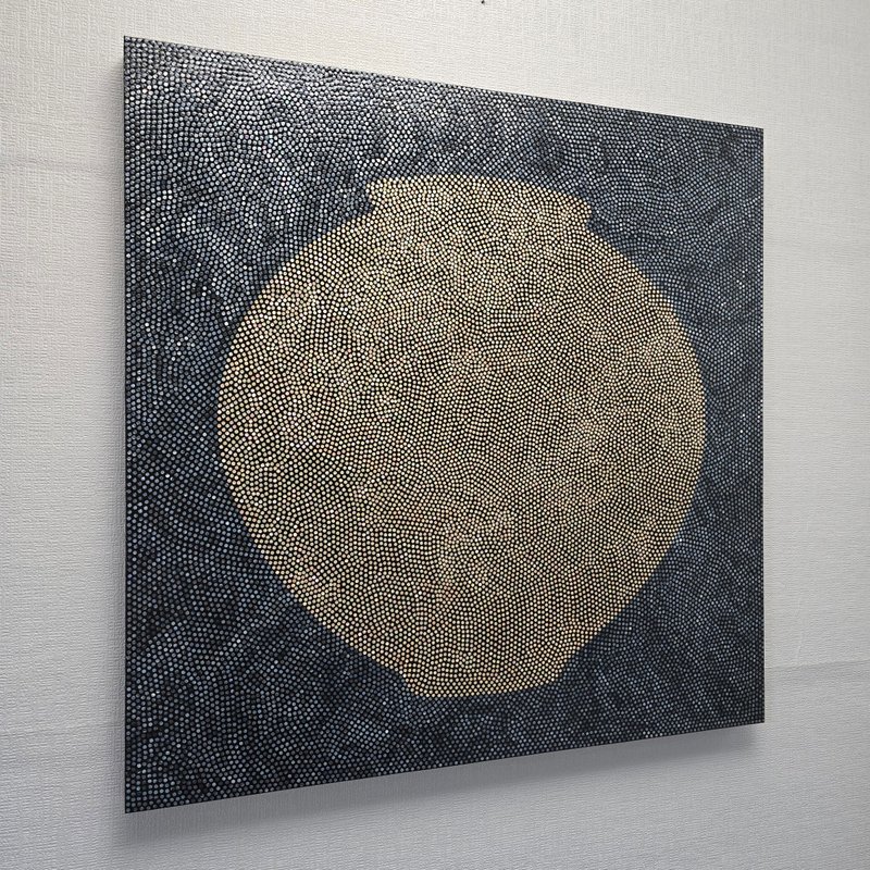 어릴 적 밤하늘을 바라보면서 꿈을 꾸고 상상의 나래를 펼친 경험이 있으신가요? 한현수 작가는 북두칠성을 바라보며 꿈을 펼쳤고 흩어져 있는 삶의 조각들을 하나하나 맞춰왔다고 합니다. 작품을 바라보면 마치 밤하늘에 은하수가 펼쳐진 것 같은데요, 작가는 자개를 한 수 한 수놓아 더욱 화려하고 눈부신 작품을 탄생시켰습니다. 작업이 겉으로 보기에는 쉽고 단순해 보이지만, 하나의 작품을 완성하는데 많은 시간과 정성 그리고 집중력을 녹여 담게 됩니다. 작가의 헌신적인 손끝에서 탄생한 춤추는 고래와 다복의 항아리를 감상하시면서, 반짝반짝한 꿈을 펼쳐보는 것은 어떠신가요?