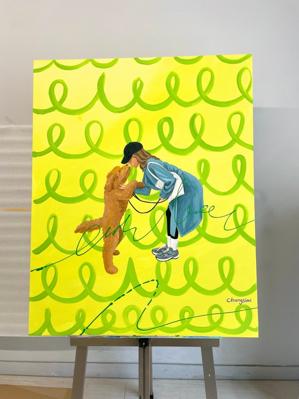 청아 작가는 일상 속 자유와 행복의 순간을 포착하여 그려낸다. 작가의 작품 속에는 골프를 즐기는 모습, 피크닉을 하는 모습, 고양이를 만난 모습 등, 일상적인 모습이 주로 포착된다. 많은 사람들이 일상의 한 순간을 기억하기 위해 사진으로 남기는 것처럼, 작가는 기억하고 싶은 순간을 그림으로 남기면서 그 당시의 행복을 되새긴다. 작품에는 핑크색과 초록색 등 따뜻한 색감이 주로 사용되었으며, 이러한 색감은 작가가 당시 느꼈던 편안한 감정과 분위기를 전달하는 매개체의 역할을 한다. 작품을 통해 우리는 자유와 행복이 멀리 있는 것이 아니라 우리와 아주 가까운 곳에서 발견될 수 있다는 것을 알 수 있다. 작품을 감상하며, 일상의 자유로움과 행복을 가까이 느끼기를 바란다.