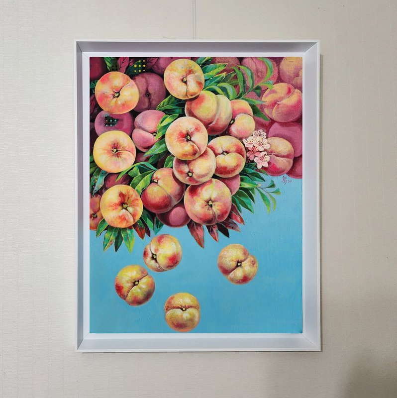 복숭아 작가로 불리는 박경희 작가는 사실적 재현과 초현실주의 화법을 통해 복숭아 과수원에서 보낸 유년기 시절의 행복한 기억을 미학적으로 담아낸다. 작가는 살아가다 보면 어떤 사건이나 계기로 행복을 잃게 되고 이를 되찾기 위한 방법들을 갈구하게 된다고 말한다. 더불어 '행복'이란 원래 우리 마음속에 존재하며, 대단한 것이 아니라 걱정 없이 살았던 유년기의 평범한 일상과 같다고 말한다. 따라서 작가의 작품에서 중요한 오브제는 유년 시절의 아름다운 기억을 회고하는 매개체이자 그리움의 상징적 대상인 '복숭아'이며, 이는 작품 속에서 작가가 유년 시절에 느낀 행복한 감정의 공유를 돕는 역할을 한다. 작가는 사실주의 화법으로 과거의 기억을 재현하고, 데페이즈망 기법으로 무의식 속 오브제들을 결합해 몽환적이고 흐릿한 유년기 시절의 감정을 표현한다.