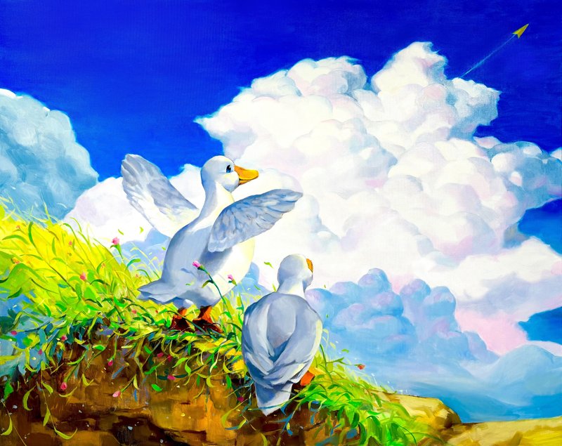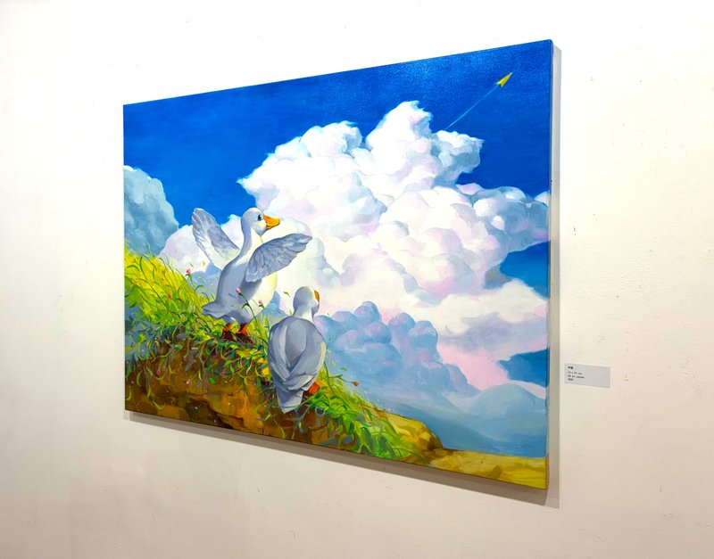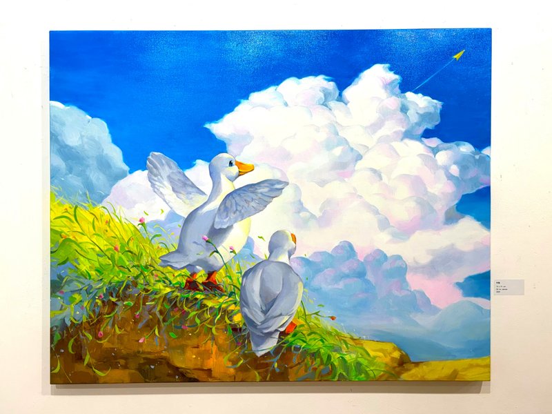 김현규 작가는 형태가 불분명한 풍경화를 그리거나 사실주의에 가까운 풍경을 그리는 두 가지의 방법을 사용하며 작업한다. 첫 번째 방법인 추상에 가까운 풍경화는 자연의 생명력과 변화를 섬세하게 포착한다. 굵은 선으로 하늘의 역동적 움직임을 그려내며 이를 표현하기 위해 이미 기름으로 갠 유화 물감을 한 번 더 기름에 개어 캔버스에 아주 얇게 바르거나 긁고, 흘리고, 뭉개는 등의 우연성과 직감적인 제작 방식으로 새롭게 만든 조형적 언어를 사용한다. 이는 작품에서 작가의 무의식적인 표현과 의도 되지 않은 빛의 형태로서 작용하기를 바라는 방법론으로, 원하는 색을 찾는 과정과 캔버스에서 이상적 하얀색의 의미를 심도 있게 재조명하는 데 초점을 두고 있다. 두 번째 방법인 사실주의 기법은 흰색 꽃과 오리, 초록 잔디의 대비를 극명하게 표현한다. 이는 본래 가지고 있는 고유의 색감을 돋보이게 주목하면서 위에 설명한 작가가 탐구하는 조형적 언어와 동일한 방법론으로 작품이 전개된다.