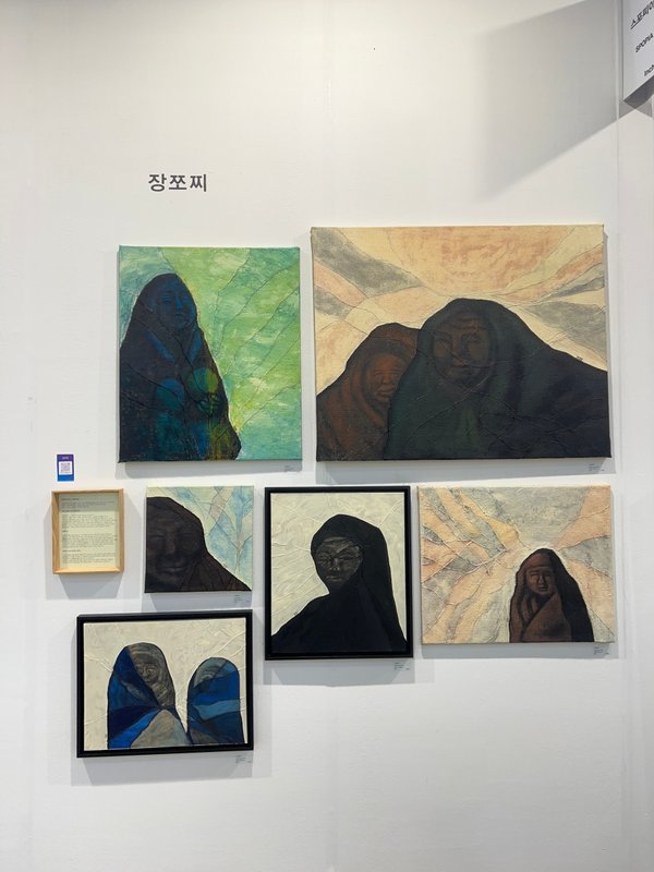 장쪼찌 작가는 자연물이나 불특정한 인물을 통해 인간의 본질을 그려낸다. 작품에는 나무나 구름, 누군지 모를 여성과 같은 다양한 존재가 등장하는데, 끊어질 듯 불안하지만 계속해서 이어지는 끈질긴 선으로 묘사되고 있다. 나무의 거친 질감을 연상하게 하는 선은 안정적이거나 일정하지 않지만, 캔버스를 넘어서 확장되고 있는 느낌을 전달하며 끊임없이 재생하는 것처럼 보인다. 먹을 머금은 차분하고 무게감 있는 색도 이러한 선과 마찬가지로 모호하지만, 여러 겹 덧대어져서 걷어낼 수 없게 번져나가는 모습을 나타낸다. 이처럼 작가의 표현 방식은 예측할 수 없고 불안한 인간의 삶과 생명을 떠올리게 하지만, 동시에 불완전함을 기반으로 다양한 가능성을 품으며 변화해 나가는 존재가 인간이라는 점도 전달하고 있다.