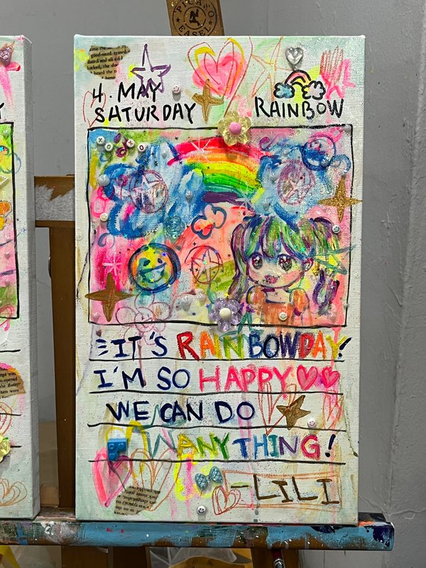 시온 작가는 애니메이션에서 영감을 받아 반짝반짝 빛나는 순간을 캐릭터 ‘리리’를 통해 표현한다. 애니메이션 속 주인공들은 아무리 어렵고 힘든 상황이어도 포기하지 않고 힘듦과 맞서 싸운다. 작가는 그 반짝이는 주인공들의 도전과 과정 속에서 큰 위로와 공감을 받아, 이를 리리랜드 시리즈에 담아낸다. ‘리리’들은 만화적인 화풍 위에 회화적인 터치를 더하여 표현되어 있다. 또한 반짝반짝 빛이 나는 듯한 표현을 다양한 색채로 표현해 애니메이션 속 아름답고 명랑한 느낌을 효과적으로 전달한다. 이는 리리랜드가 허구의 세상이지만 우리의 세상과 닮아 있고, 우리 존재도 리리들과 마찬가지로 누구나 행복하고 사랑받으며 빛날 수 있는 존재라는 메시지를 담고 있다. 작가는 리리랜드 시리즈를 통해서 반짝이는 에너지를 온전히 담아내고, 그림을 감상하는 사람들에게 작은 위로와 행복을 전하고자 한다.