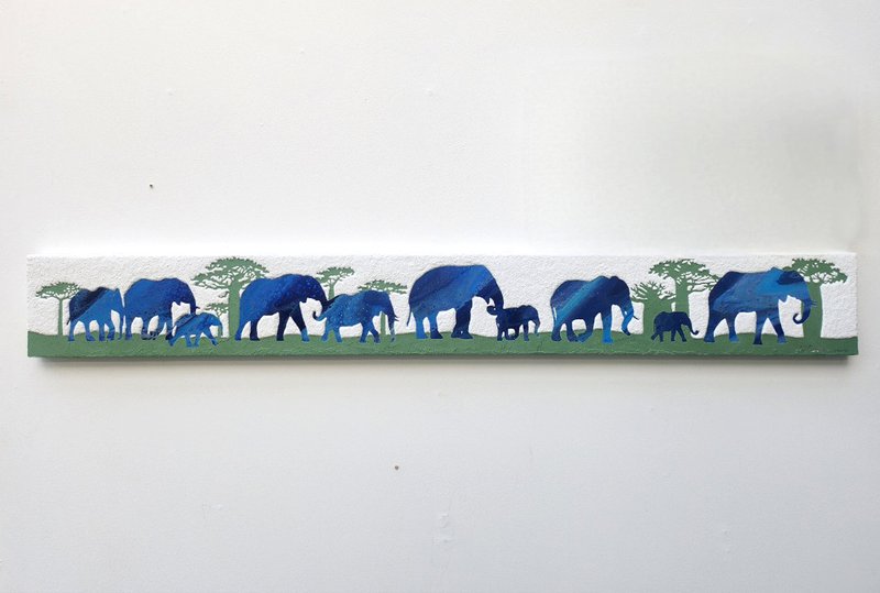 김서연 작가는 플루이드 기법으로 그려진 코끼리로 꿈과 도전을 형상화한다. '플루이드'란 유동적인 성질을 가진 재료로 그림을 그리는 것으로, 작가는 액체가 흐르면서 발생하는 '우연적 효과', 곧 자유로움과 도전적 정신의 합을 보여주는 이 기법이 코끼리를 묘사할 때 가장 적합한 방식이라고 여겼다. 작가가 코끼리 그림을 그리게 된 이유는 코끼리의 수장은 암컷으로, 지혜를 나누어주며 숲길을 터주는 따뜻한 리더라는 점이 인상적이었기 때문인데, 작가는 코끼리 이미지에 자기 자신을 투영하고, 생동감 넘치는 붓칠로 아티스트로서 나아가는 길에 대한 열정을 보여준다. 다채로운 색상의 작품에서 신비로운 교감의 에너지와 부드러운 힘이 느껴지는 이유가 바로 여기에 있다. 작가는 그리는 행위로 가슴에 예술혼을 지닌 자들과 함께하는 이 길을 포기하지 않을 것이며 이로써 행복을 충만하게 누릴 것을 다짐한다.
