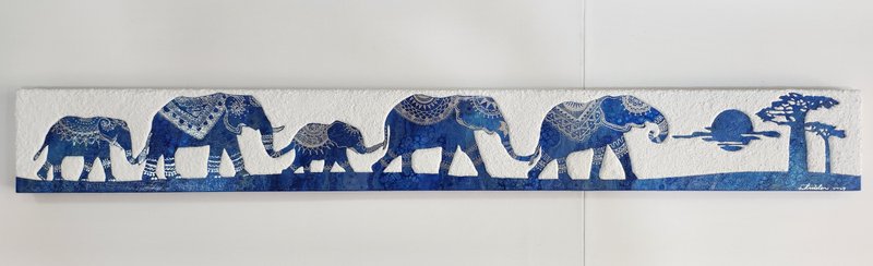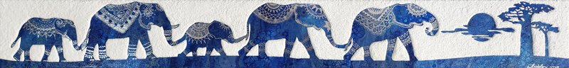 김서연 작가는 코끼리로 꿈과 도전을 그립니다. 작가가 특별히 사용하는 기법은 '플루이드'인데요, 플루이드란 유동적인 성질을 가진 재료가 흐르는 방향이나 모양에 따라 그림이 완성되는 기법으로, 우연적 효과로 그려진다는 점이 매력적입니다. 코끼리 사회는 모계사회로, 암컷 수장 코끼리의 지혜와 따뜻함을 닮고 싶었던 작가는 코끼리 이미지에 자기 자신을 투영하고자 했고, 플로이드의 '자유로움'과 '도전적 특성'이 작가가 그리고자 하는 코끼리를 가장 잘 표현할 수 있는 적합한 기법이라고 생각했습니다. 작가는 다채로운 색채로 코끼리에 생동감을 부여하는데요, 그림을 보다 보면 코끼리가 온화한 에너지로 교감을 나누고자 하는 듯한 느낌이 듭니다. 오아시스를 찾아 나미브 사막을 걷는 코끼리처럼 작가는 그리는 행위로 꿈을 잃지 않고 예술인 동지와 함께하는 길에 대한 열정을 표출하며, 행복을 충만하게 누릴 것을 다짐합니다. 김서연 작가의 강인한 부드러움이 느껴지는 코끼리의 응원으로 마음속에 품고 있던 꿈과 도전을 꺼내보며 별빛 가득한 하루를 보내시는 건 어떠신가요?