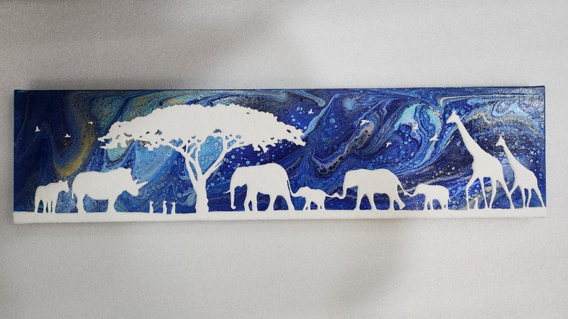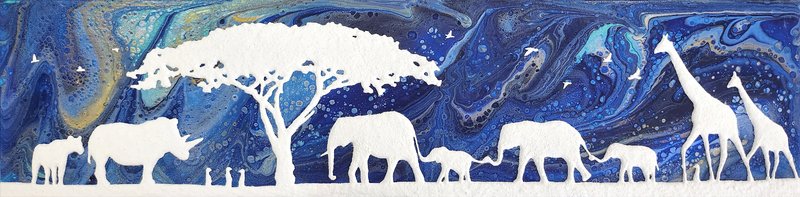김서연 작가는 코끼리로 꿈과 도전을 그립니다. 작가가 특별히 사용하는 기법은 '플루이드'인데요, 플루이드란 유동적인 성질을 가진 재료가 흐르는 방향이나 모양에 따라 그림이 완성되는 기법으로, 우연적 효과로 그려진다는 점이 매력적입니다. 코끼리 사회는 모계사회로, 암컷 수장 코끼리의 지혜와 따뜻함을 닮고 싶었던 작가는 코끼리 이미지에 자기 자신을 투영하고자 했고, 플로이드의 '자유로움'과 '도전적 특성'이 작가가 그리고자 하는 코끼리를 가장 잘 표현할 수 있는 적합한 기법이라고 생각했습니다. 작가는 다채로운 색채로 코끼리에 생동감을 부여하는데요, 그림을 보다 보면 코끼리가 온화한 에너지로 교감을 나누고자 하는 듯한 느낌이 듭니다. 오아시스를 찾아 나미브 사막을 걷는 코끼리처럼 작가는 그리는 행위로 꿈을 잃지 않고 예술인 동지와 함께하는 길에 대한 열정을 표출하며, 행복을 충만하게 누릴 것을 다짐합니다. 김서연 작가의 강인한 부드러움이 느껴지는 코끼리의 응원으로 마음속에 품고 있던 꿈과 도전을 꺼내보며 별빛 가득한 하루를 보내시는 건 어떠신가요?
