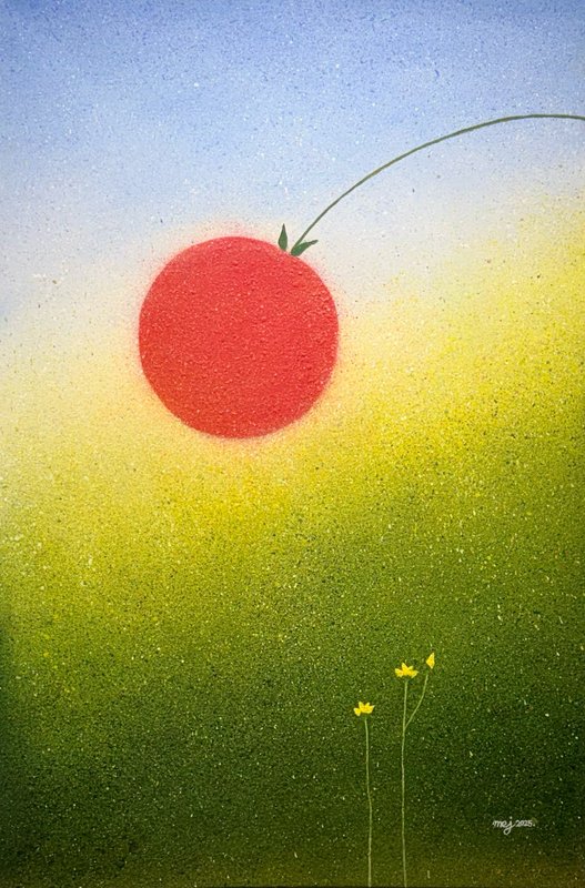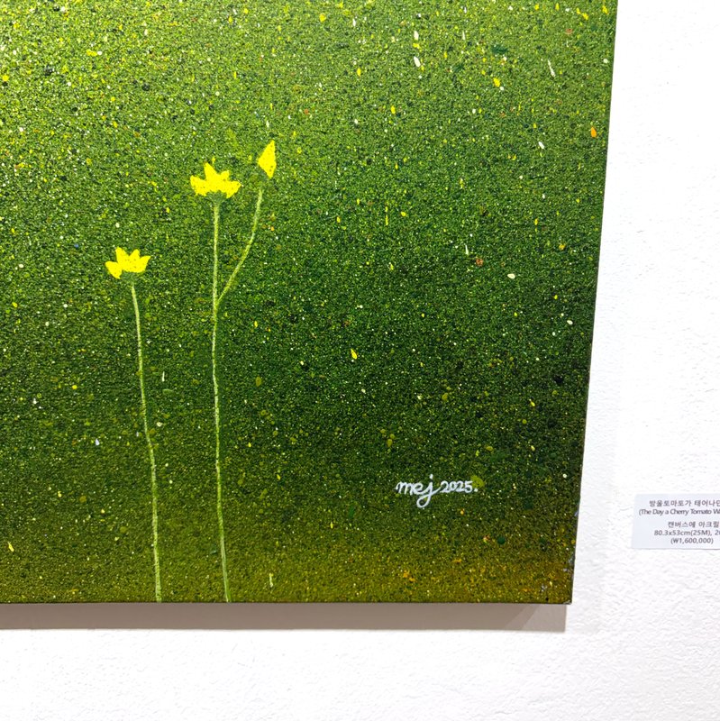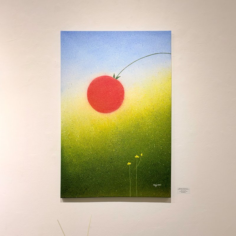 문은지 작가의 작품은 방울토마토라는 작은 식물에 깃든 생명력과 보이지 않는 상호작용을 감각적으로 전달합니다. 붉은 열매만이 아닌, 땅속의 뿌리와 이름 없는 잎에 주목하며, 자연이 지닌 깊은 아름다움과 섬세한 연결을 느끼게 합니다. 작가는 식물의 미묘한 생명력을 세심하게 관찰하며, 그 감각들을 화면에 고스란히 담아냈습니다. 선과 점으로 이루어진 율동감 있는 표현은 마치 방울토마토가 자라며 겪는 생명의 리듬을 그대로 옮겨 놓은 듯합니다. 이 작품을 통해 자연 속에 숨겨진 조화와 생명의 비밀을 발견하며, 우리가 일상 속에서 쉽게 지나쳤던 작은 것들의 아름다움을 새롭게 느껴보시는 건 어떠실까요?