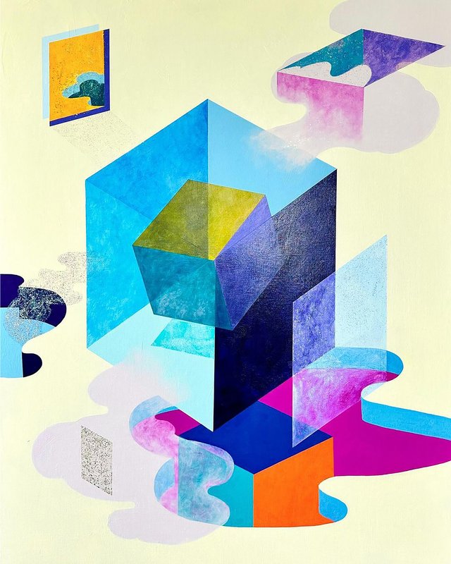 임성은 작가의 작품은 민트, 바이올렛, 레몬, 그린 같은 감각적인 컬러 사용과 평면과 입체를 넘나드는 독특한 구성이 돋보입니다. 캔버스 속 등장하는 공간들은 상상력을 자극합니다. 직선과 곡선이 연결되며 만들어내는 공간은 끝없이 이어지기도 하고, 갑자기 신기루처럼 사라지기도 합니다. 시선이 이끄는 대로 작품을 감상하다 보면 숨겨진 보물을 찾는 듯한 느낌마저 들게 됩니다. 작가는 기억과 경험으로 재구성된 몽환적인 장소로 우리를 초대합니다. 현실에 존재하지 않는 낯선 공간은 아이부터 어른까지 모든 이들의 감각과 호기심을 아우르기에 충분합니다. 임성은 작가의 작품으로 시공간을 넘나드는 새로운 경험을 해보시길 추천합니다.