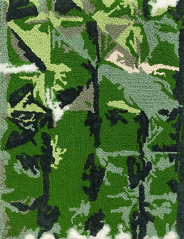 도라는 터프팅 기법을 활용해 회화와 텍스타일 아트의 경계를 넘나드는 작가이다. ‘터프팅(tufting)’은 기구를 이용해 천 위에 실을 반복적으로 박아 넣어 이미지나 패턴을 구성하는 방식으로, 다양한 두께와 텍스처의 실을 활용해 풍부한 입체감과 촉각성을 지닌다. 평면 회화와 다르게 실이라는 재료가 지닌 물질성과 부드러운 질감은 화면에 온기를 자연스럽게 불러일으키게 된다. 자유롭게 여러 색을 섞을 수 있는 물감과는 달리 하나의 실은 하나의 색을 지니고 있기 때문에, 작품은 색실에 의해 한땀한땀 표현되며, 이는 마치 점묘법과 같이 색채가 보다 또렷하게 드러나게 된다. 작가는 이러한 기법을 활용해 경험하거나 사유하는 것들을 작가만의 시선으로 해석하여 표현한다.