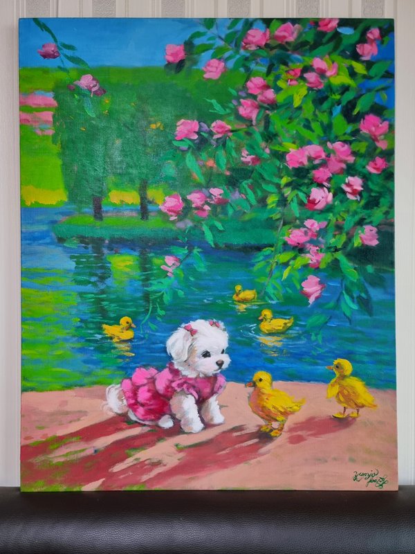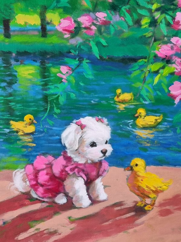 박윤조 작가는 도시 속에서 우리에게 마음의 여유를 안겨주는 존재들을 화폭에 담고자 합니다. 바쁘고 번잡한 도심 속에서 점차 여유를 잃어가는 우리에게 절실한 키워드는 바로 '힐링' 아닐까요? 작가는 청춘의 열기가 느껴지는 청년들과 우아하고 아름다운 모습의 꽃 등을 작품의 주요 소재로 사용하는데요. 그중에서도 그녀에게 가장 큰 '힐링'이 되어주었던 존재는 바로 그녀의 반려견이었습니다. 때로는 말썽쟁이, 사고뭉치였다가도, 어느새 졸졸졸 따라다니며 애정을 구하는 껌딱지 같은 반려견들에게 느껴지는 사랑이 그녀의 작품 속에서도 느껴지는 듯합니다. 20년을 넘게 가장 가까운 곳에서 아낌없는 사랑을 전하는 반려견들의 사랑스러운 모습을 함께 바라본다면, 지쳐 있던 우리의 마음도 해맑은 아이들의 눈빛에 결국 녹아 버리고 말 거예요.