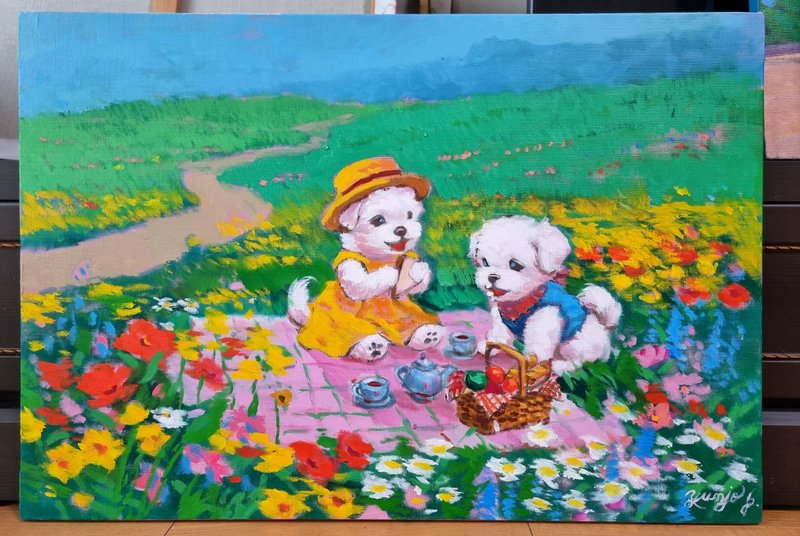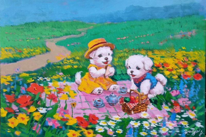 박윤조 작가는 도시 속에서 우리에게 마음의 여유를 안겨주는 존재들을 화폭에 담고자 합니다. 바쁘고 번잡한 도심 속에서 점차 여유를 잃어가는 우리에게 절실한 키워드는 바로 '힐링' 아닐까요? 작가는 청춘의 열기가 느껴지는 청년들과 우아하고 아름다운 모습의 꽃 등을 작품의 주요 소재로 사용하는데요. 그중에서도 그녀에게 가장 큰 '힐링'이 되어주었던 존재는 바로 그녀의 반려견이었습니다. 때로는 말썽쟁이, 사고뭉치였다가도, 어느새 졸졸졸 따라다니며 애정을 구하는 껌딱지 같은 반려견들에게 느껴지는 사랑이 그녀의 작품 속에서도 느껴지는 듯합니다. 20년을 넘게 가장 가까운 곳에서 아낌없는 사랑을 전하는 반려견들의 사랑스러운 모습을 함께 바라본다면, 지쳐 있던 우리의 마음도 해맑은 아이들의 눈빛에 결국 녹아 버리고 말 거예요.