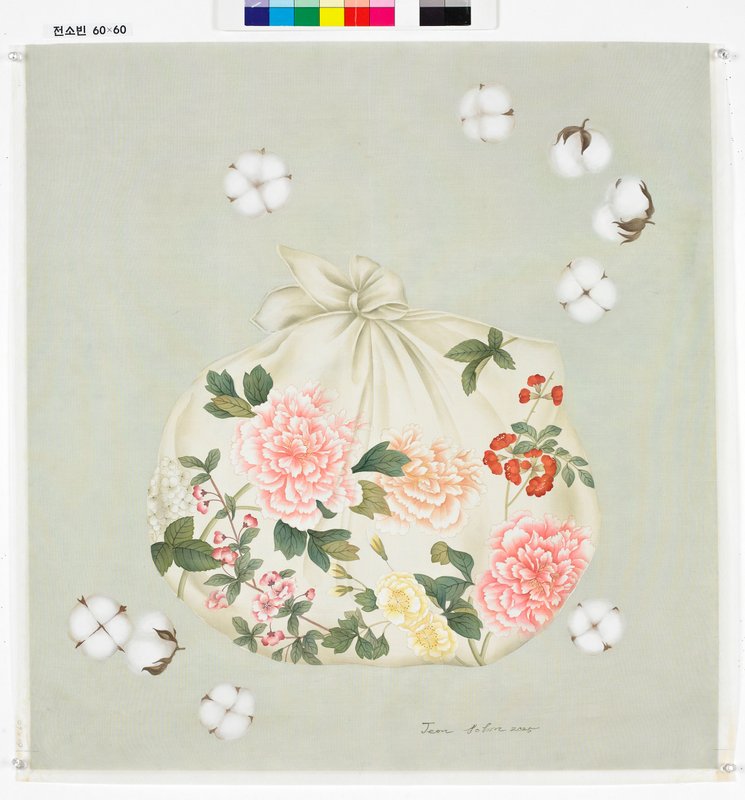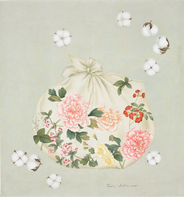 전소빈 작가는 주변의 작은 생명체와 삶 속 사물들을 통해 감정과 감성의 교차를 시각적으로 탐구한다. 그의 작품 속 고양이, 새, 식물, 보따리 같은 오브제들은 단순한 소재가 아닌, 작가의 기억과 감정을 담은 상징물이다. 작가는 일상에서 무심코 지나치는 순간들을 포착해, 인간과 자연의 관계를 섬세하게 재현한다. 비단에 채색하는 그의 표현 방식은, 부드럽고 투명한 질감과 섬세한 붓 터치가 결합되어 작품에 생동감과 우아함을 더한다. 특히, 고양이와 새의 털은 자연스럽게 묘사되어 생명력이 느껴지고, 보따리와 꽃 같은 오브제들은 정교한 명암 처리로 더욱 실감 나게 표현되었다. 이러한 요소들은 작품에 깊이와 감성적인 울림을 부여하며, 우리에게 따뜻한 위로를 전한다. 전소빈 작가의 작품은 우리로 하여금 잊고 지냈던 감정과 순간들을 회상하게 하며, 그 속에서 각자의 따뜻한 기억을 찾아보도록 이끈다. 그의 작품을 감상하며 무심코 지나쳤던 소중한 감정과 기억들을 다시 떠올려 보길 바란다.