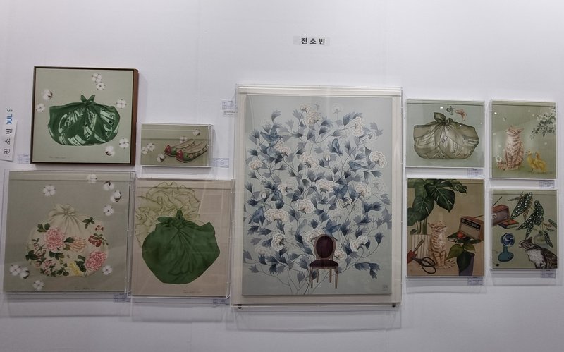 전소빈 작가는 일상 속에서 놓치기 쉬운 작은 순간들과 감정을 작품에 섬세하게 담아내어, 우리에게 깊은 공감과 위로를 전달합니다. 작품은 비단에 섬세한 채색으로 표현되어, 부드럽고도 투명한 질감이 돋보이는데요. 작품 속 고양이, 새, 보따리 같은 오브제들은 따뜻한 색감과 세밀한 붓 터치를 통해 생동감이 느껴지기도 합니다. 이는 단순한 시각적 아름다움을 넘어, 우리에게 잊고 있던 감정과 추억을 떠올리게 하며, 생동감 넘치는 화면을 통해 작품을 감상하는 동안 소소한 행복과 기억을 다시금 되새기게 만듭니다. 일상 속에서 놓쳤던 소중한 감정과 순간들을 다시 떠올리고 싶으신가요? 그의 작품을 감상하시면서 각자의 추억과 감정을 새롭게 마주하는 특별한 시간을 가져보시는 것은 어떠신가요?