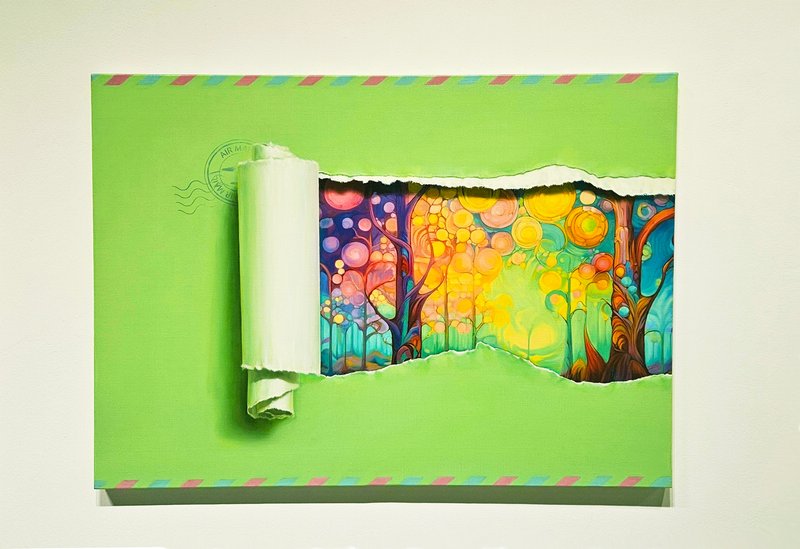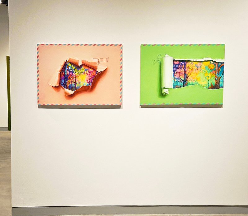 김명선 작가는 표면이 찢어지는 상태를 형상화함으로써 자신의 내면을 투영하는 작업을 주로 행한다. 그는 캔버스에 유화로 다양한 색상을 조합하여 정교하고 사실적인 표현 기법을 통해 화면을 찢어진 종이와 같이 묘사한다. 이로써 작품은 찢긴 종이라는 입체감과 종이로 상정된 화면의 평면성이 공존하게 된다. 작가에 따르면, 이 대상은 사물화된 자아의 정체성 표현이자 자신을 드러내는 상징물이다. 즉, 평면적이고도 입체적인 개개인의 자아를 작가는 찢어짐의 형태에 비유한 것이다. 어쩌면 완전하지 않고 일부 어그러지거나 여백이 존재한다는 특성이 마치 우리 마음속 내면과도 닮은 듯하다. 작가는 무수한 찢어짐의 형태를 통해, 개개인을 둘러싼 시공간의 유기적 관계를 상징적으로 표현하기도 한다. 이렇듯 작가에게 작품을 그리는 과정은, 자아를 성찰하고 자신의 가치를 자각하는 소중한 시간으로 자리 잡고 있다.