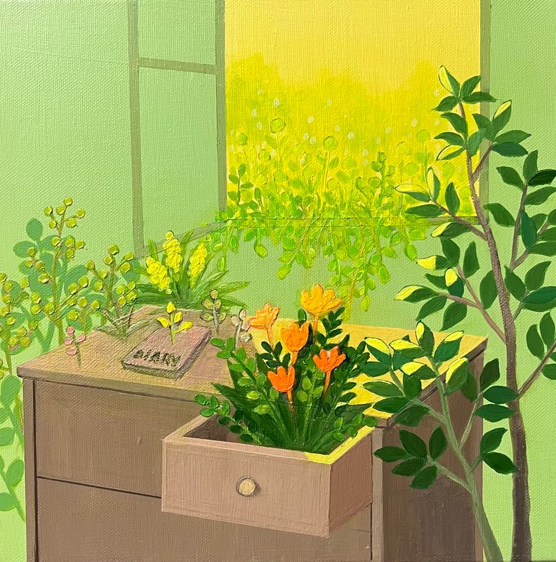 Moa 작가는 따스하고 독특한 감성으로 캔버스 위에 식물을 디자인하고 정원을 가꾸어 나간다. 빠르게 건조되며 투명하게 중첩되는 아크릴의 물성을 활용하여 실제 식물을 심듯이 물감을 켜켜이 쌓아 표현한다. 각기 다른 풀, 꽃, 나무들로 공간을 메꾸어 나가다 보면 한낮의 눈부신 정원부터, 수많은 별이 쏟아지는 신비로운 정원까지 다채로운 매력을 가진 정원들이 완성된다. 작가는 정원을 우리의 삶에 비유한다. 정원사가 자신의 정원에 직접 고른 식물을 심고 정성껏 돌보는 것처럼, 우리도 각자 중요하다고 여기는 것들로 삶을 메워 나간다. 우리는 최선을 다해서 가꾸어 나가면서 나만을 위한 정원을 꾸밀 수 있다. 작가는 이런 비유를 통해서 주어진 것에 집중하여 현재를 즐기고, 소중한 것들로 삶은 채워 간다면 누구나 자신만의 탐스럽고 풍성한 정원을 발견할 수 있을 것이라고 이야기한다.