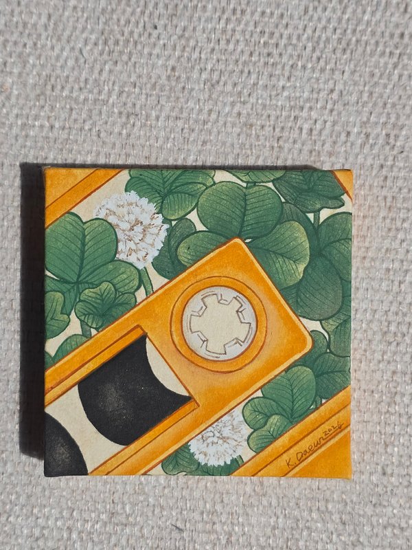 김다은 작가의 ‘Analog’ 시리즈는 바쁘게 흘러가는 오늘날의 시간 속에서 우리가 잊고 지낸 속도를 다시 상기시킨다. 작가는 필름 카메라, 카세트테이프, 타자기 등 한때 우리와 함께했던 아날로그 기기들을 회화의 주인공으로 소환하고, 그 위에 꽃과 식물의 생명력을 덧입힌다. 버튼 하나에 담긴 기다림, 테이프를 감는 손길, 타자기의 리듬 속에 우리의 집중과 애정, 설렘이 배어 있던 사물이 전해 주는 기억 위에 자연의 식물 이미지를 겹쳐 배치하며, 감정이 천천히 피어나는 장면을 시각화한다. 인공과 자연, 기계와 감정이라는 이질적 요소들은 회화 속에서 마치 한 생태계를 이루듯 조화롭게 놓이며, 인간과 사물, 기억과 자연의 상호작용을 은유한다. 작업에 사용된 진채화 기법은 엷은 색을 여러 겹 덧입히는 느린 방식이다. 진채화 기법을 통해 한 겹 한 겹 색을 쌓아가는 방식은 빠름과 효율성이 미덕인 오늘날에 역행하는 태도로, 작가는 이 느림의 과정을 ‘감정의 여백’이라 표현한다. 김다은 작가의 ‘Analog’ 시리즈를 통해, 관람자가 잠시 멈추어 서서 느리게 자신을 되돌아볼 수 있는 시간을 갖길 바란다.