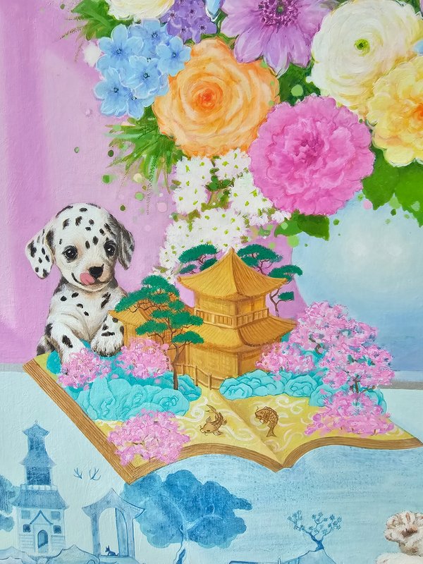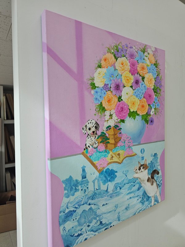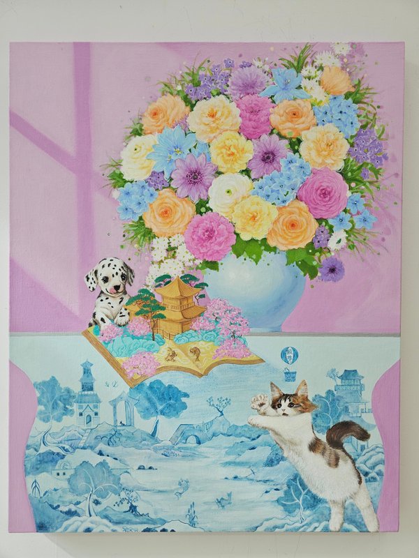 작가는 좋았던 기억과 행복했던 경험이 빛이 바래기 전에 하나의 화폭에 담아 추억을 고정한다. 고정된 추억은 사라지거나 훼손되지 않으며, 오히려 더욱 환상적이고 아름답게 기억된다. 흔히 기억은 시간이 지나면서 미화되어 추억이 된다고 하지만, 그의 작품은 과거의 순간을 극대화하여 단순한 추억 이상의 것으로 남게 된다. 특히 그의 작품에 자주 등장하는 꽃과 동물들은 이런 감정을 더욱 돋보이게 한다. 작고 사랑스러운 동물들과 화려한 색감의 꽃들이 조화를 이루어 작품은 감상자를 더욱 신비롭고 환상적인 세계로 이끈다. 작가는 모든 사람들이 자신이 경험한 행복하고 즐거웠던 추억들을 잊지 않고 음미하며, 그 추억 속에서 삶을 더욱 풍요롭게 가꾸어 나가기를 소망한다. 아름다운 순간을 더욱 아름답게, 사랑스러운 존재들과 함께 영원히 기억하고자 하는 작가의 마음은 그림을 넘어 관객의 마음속까지 스며들어, 감성적인 공감을 불러일으킨다.