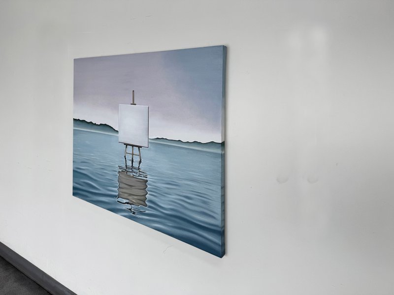 지상현 작가는 우리가 익히 알고 있는 정돈적이고 정형화된 대상에 흐트러지고 흔들리는 표현을 더해내어 시각적 대비 효과를 극명하게 연출한다. 이는 자유롭고 감각적인 행위인 ‘유영(遊泳)’의 개념으로 정형화된 대상을 재해석한다는 의미를 지닌다. 각 대상들의 고유한 성격을 나타내듯 소재들은 단단하고 견고하게 표현되어 있으며, 물의 거울상과 배경의 도형적 요소로 표현된 흐름들은 견고한 소재들 주의에 움직임을 형성한다. 이러한 정형화된 대상과 그 사이의 흐름들은 감상자 마음속에 심리적인 자극을 자아내어 미적, 미학적인 즐거움을 관객들에게 선사한다. 또한 대상에 대한 세밀하고 정갈한 묘사와 배경 상의 대비, 깔끔하고 단순한 색감의 사용은 작가의 의도를 더 효과적으로 관객들에게 전달한다.