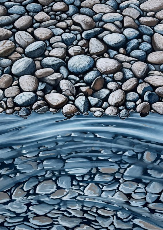 지상현 작가는 우리가 익히 알고 있는 정돈적이고 정형화된 대상에 흐트러지고 흔들리는 표현을 더해내어 시각적 대비 효과를 극명하게 연출한다. 이는 자유롭고 감각적인 행위인 ‘유영(遊泳)’의 개념으로 정형화된 대상을 재해석한다는 의미를 지닌다. 각 대상들의 고유한 성격을 나타내듯 소재들은 단단하고 견고하게 표현되어 있으며, 물의 거울상과 배경의 도형적 요소로 표현된 흐름들은 견고한 소재들 주의에 움직임을 형성한다. 이러한 정형화된 대상과 그 사이의 흐름들은 감상자 마음속에 심리적인 자극을 자아내어 미적, 미학적인 즐거움을 관객들에게 선사한다. 또한 대상에 대한 세밀하고 정갈한 묘사와 배경 상의 대비, 깔끔하고 단순한 색감의 사용은 작가의 의도를 더 효과적으로 관객들에게 전달한다.