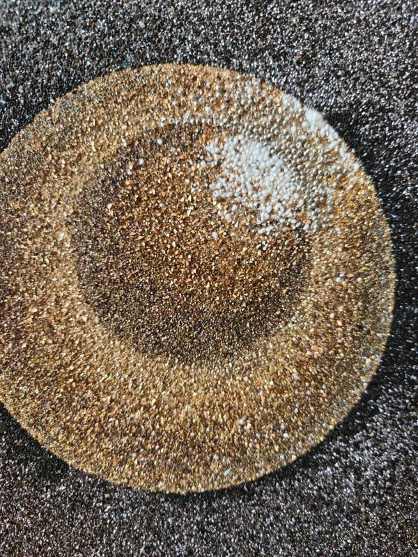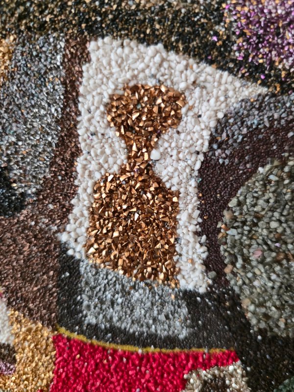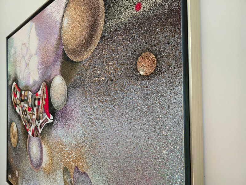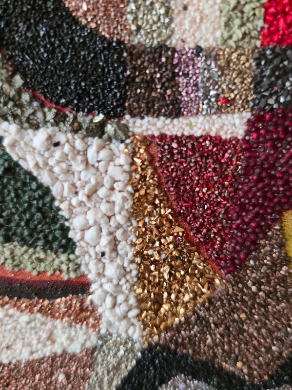 나무패널에 금도금, 은도금, 세라믹알갱이, 유리구슬, 가넷, 자연동, 청동, 황동, 주사