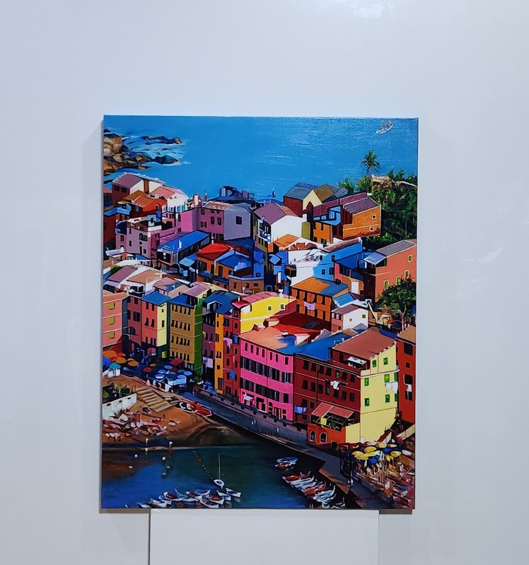여행을 좋아하시나요? 아마도 다양한 이유가 있을 것이지만, 익숙한 곳을 떠나 새로운 곳에서 지친 몸과 마음을 재충전하고자 하는 마음이 여행을 좋아하는 가장 큰 이유일 것 같습니다. 곽용자 작가의 작품은 여행이 주는 여유와 즐거움을 느끼게 해줍니다. 작품 속 마을의 풍경은 여행객들이 만나게 되는 자유와 힐링을 보여주고 있습니다. 작가가 그려낸 마을을 보면 모자이크 같은 집들이 모여 컬러풀한 광경을 펼쳐 보입니다. 색색의 건물들이 모여있는 마을은 신비로운 모습을 보여주는 동시에 여행에 대한 설렘을 동시에 느끼게 합니다. 환상적인 마을의 풍경을 보며 여행지에서의 추억과 낭만을 느끼시는 것은 어떨까요?