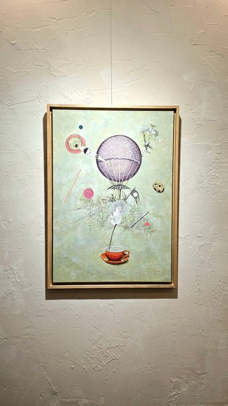 누군가를 만나 커피 한잔을 하며 이야기를 나누듯, 작품 속 커피잔에 담긴 이야기를 상상해 보며 누군가와 함께 대화를 나눠보는 것 어떠실까요? 작품 속 커피잔과 연결된 열기구는 마치 하늘에서 땅으로 커피를 내려주는 이상적인 커피 머신과도 같아 보입니다. 후안리킴 작가는 일상에서 친근한 소재와 걸맞지 않은 상상의 세계를 결합시켜 신비롭고 독특한 작품 세계를 보여줍니다. 이로 인해 감상자에게 좀 더 친숙한 방식으로 작가의 이상적인 세계를 구현합니다. 작가는 꽃과 나비, 로봇 등과 같이 쉽게 상상할 수 없는 대상을 조합해 삶과 이상이 만나는 지점을 만들고, 동화 같은 이야기 속으로 감상자를 인도합니다. 부조리하고 악한 존재에 맞서며 결국에는 거짓 없는 진실이 이긴다는 메시지를 담은 작가의 이야기 속으로 빠져보시기를 바랍니다.