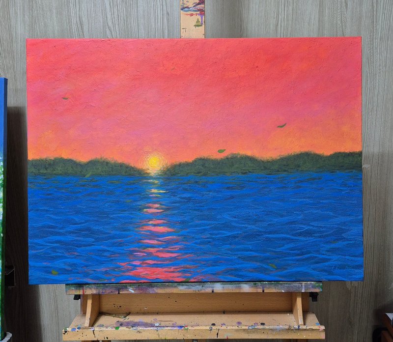 작가는 자연을 주제로 한 풍경화를 통해 편안함과 아름다움을 전하는 작품을 그려낸다. 꽃과 나비, 산과 바다의 경치를 캔버스에 담아내어 자연의 평화롭고 따뜻한 풍경을 표현한다. 특히 물의 아름다움을 사랑하여 호수와 바다를 주제로 한 작품이 많으며, 자연스러운 흐름과 질감을 살리기 위해 오일과 아크릴 물감을 사용하여 다양한 기법을 시도한다. 물감을 흘리거나 뿌리는 등 자연스러운 표현 속에서 작가가 가진 자연에 대한 깊은 애정을 느낄 수 있다. 작가는 산책을 하며 자연에서 모티브를 찾고, 자연이 말을 걸어오면 그림을 통해 응답한다고 말한다.