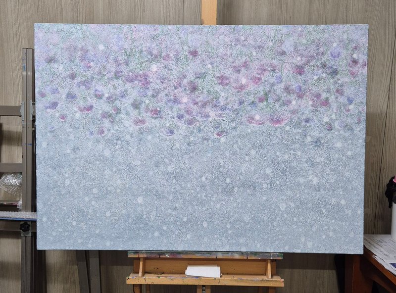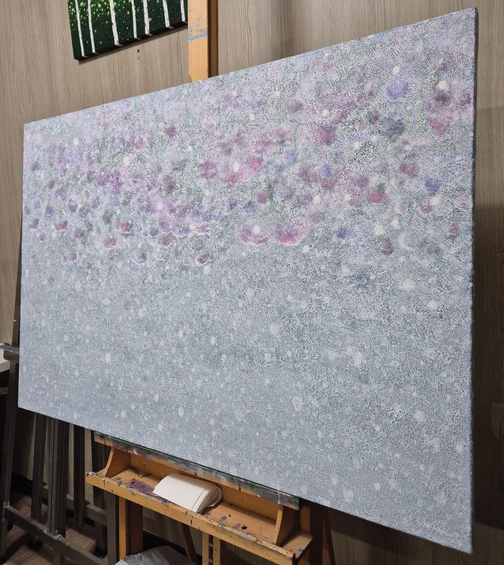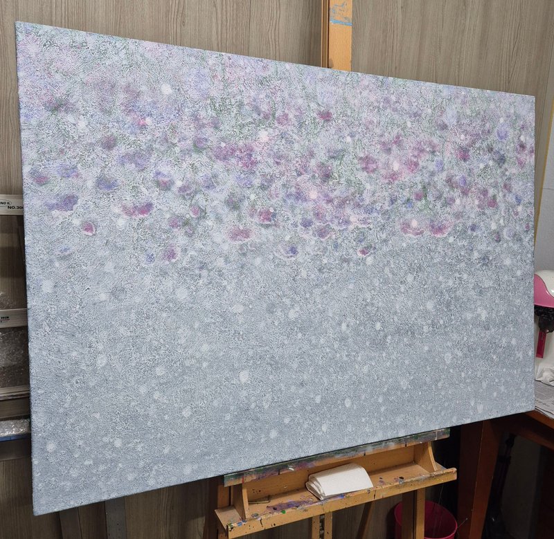 꽃내음 물씬 나는 풍경화의 세계로 여러분을 초대합니다. 작가의 작품을 바라보면 마치 봄바람에 꽃잎이 흩날리는 듯한 느낌을 받을 수 있는데요. 꽃과 나비가 어우러지는 장면은 봄의 생동감을 그대로 전해줍니다. 또한 밝은 색조와 흐릿한 배경이 꿈결 같은 몽환적인 분위기를 자아내며, 자연의 아름다움을 따뜻하고 부드럽게 전해줍니다. 작가는 대상에 대한 정교한 묘사와 함께, 작품 전체를 아우르는 따뜻한 색감을 활용하여 자연 속에 머무는 소중한 일상의 순간을 담아냅니다.
