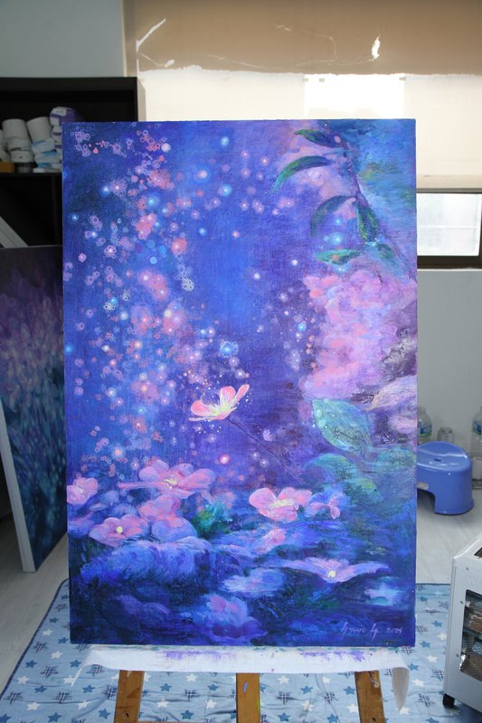경계(境界)의 사전적 의미는 사물이 어떠한 기준에 의하여 분간되는 한계를 의미합니다. 쉽게 말해서 이쪽과 저쪽을 가르는 구분선을 이야기하는 것입니다. 하지만 Hyun H 작가는 조금 다른 관점에서 경계를 바라보았습니다. 작가에게 경계란, 둘을 구분하는 것이 아닌 둘이 하나로 합쳐지는 지점입니다. 더 나아가서 과거와 현재, 이상과 현실 등의 요소에서 자연과 인간이 상호작용을 통해 겪는 새로운 삶의 경험을 이야기합니다. 작가는 이러한 경계를 주제로 다양한 삶의 모습을, 예술과 일상을 넘나들며 피어난 이야기들을 캔버스 위에 담아냅니다. 때로는 드넓은 바다와 숲이 만나는 지점에 빗대어, 때로는 우주의 별들이 자연적으로 만들어낸 모양에 빗대어 찬란한 빛깔의 색채로 경계를 표현합니다. 혹시 칼같이 나누고 계산하는 개인주의 사회에 조금 지치셨나요? 방 한편에 Hyun H 작가의 모호한 경계를 걸어보세요. 작품 속에 고스란히 담긴 작가의 감정과 이야기가 마음을 따듯하게 위로해 줄 것입니다.