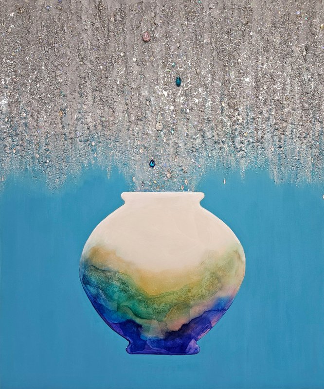 안현 작가는 레진과 다양한 혼합 재료들을 사용해 자연이 만들어내는 우연한 아름다움을 환상적인 빛깔로 표현한다. 작품을 구성하는 유동적인 안료의 흐름은 다른 소재와 닿아 바뀌고, 서로 뒤섞이며 더욱 다채로운 형태와 빛깔로 변화한다. 이러한 여러 요소는 우연히 얽히고 영향을 주고받으며 빛과 형태를 자연스럽고 유기적으로 그려나간다. 플루이드 아트가 가지는 이러한 우연성은 작가가 전하고자 하는 자연의 찬란한 순간을 더욱 극적으로 그려낸다. 그의 영감은 아름다운 풍광을 멀리서 관찰하거나 반대로 세부적으로 들여다보는 데에서 비롯된다. 찰나에 포착된 생명력과 역동성은 빛을 품을 수 있는 글리터, 자개, 천연석, 유리 등의 재료들을 통해 더욱 생동감 있게 구현된다. 안현 작가는 자연을 보며 느낀 심상을 작품으로 표현하면서 자신의 가장 어두운 시기를 구원받았다고 말한다. 작가는 인간의 재주로는 만들어낼 수 없는 자연만이 가진 치유의 힘에 다가가고자 노력하며, 자신이 받은 희망과 기쁨을 나누며 우리 또한 빛나는 존재임을 잊지 않기를 바라고 있다.