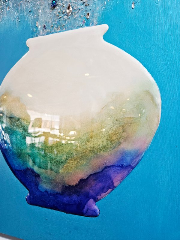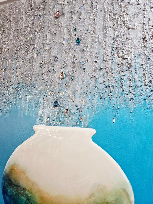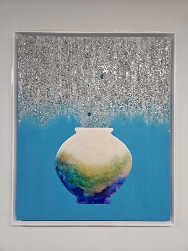 안현 작가는 레진과 다양한 혼합 재료들을 사용해 자연이 만들어내는 우연한 아름다움을 환상적인 빛깔로 표현한다. 작품을 구성하는 유동적인 안료의 흐름은 다른 소재와 닿아 바뀌고, 서로 뒤섞이며 더욱 다채로운 형태와 빛깔로 변화한다. 이러한 여러 요소는 우연히 얽히고 영향을 주고받으며 빛과 형태를 자연스럽고 유기적으로 그려나간다. 플루이드 아트가 가지는 이러한 우연성은 작가가 전하고자 하는 자연의 찬란한 순간을 더욱 극적으로 그려낸다. 그의 영감은 아름다운 풍광을 멀리서 관찰하거나 반대로 세부적으로 들여다보는 데에서 비롯된다. 찰나에 포착된 생명력과 역동성은 빛을 품을 수 있는 글리터, 자개, 천연석, 유리 등의 재료들을 통해 더욱 생동감 있게 구현된다. 안현 작가는 자연을 보며 느낀 심상을 작품으로 표현하면서 자신의 가장 어두운 시기를 구원받았다고 말한다. 작가는 인간의 재주로는 만들어낼 수 없는 자연만이 가진 치유의 힘에 다가가고자 노력하며, 자신이 받은 희망과 기쁨을 나누며 우리 또한 빛나는 존재임을 잊지 않기를 바라고 있다.