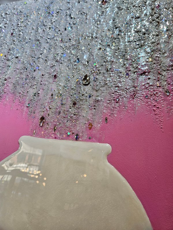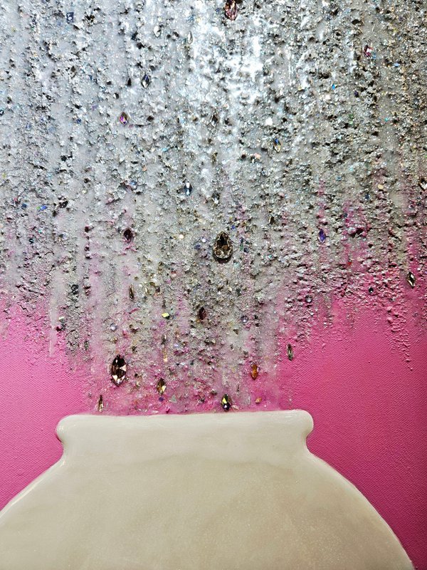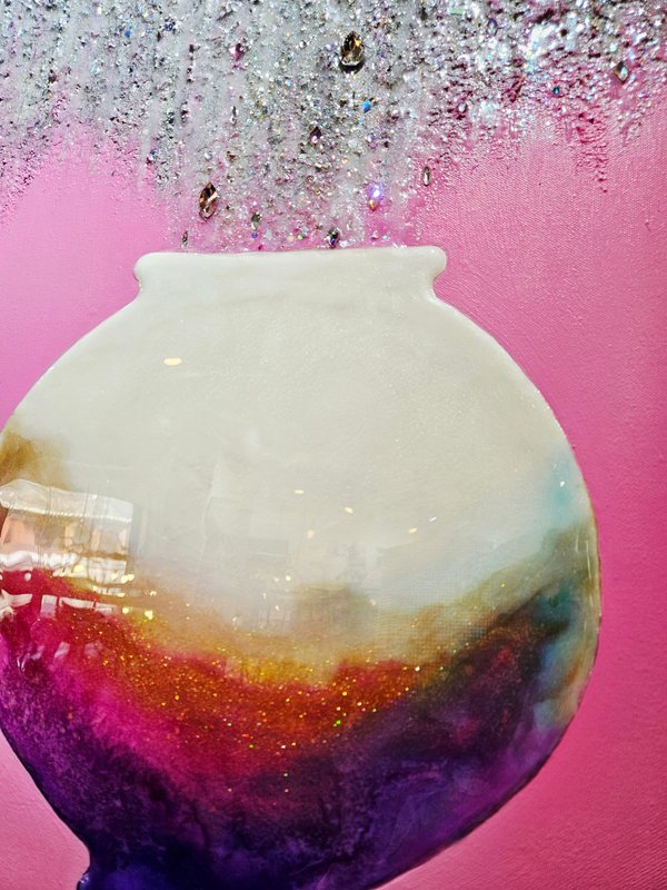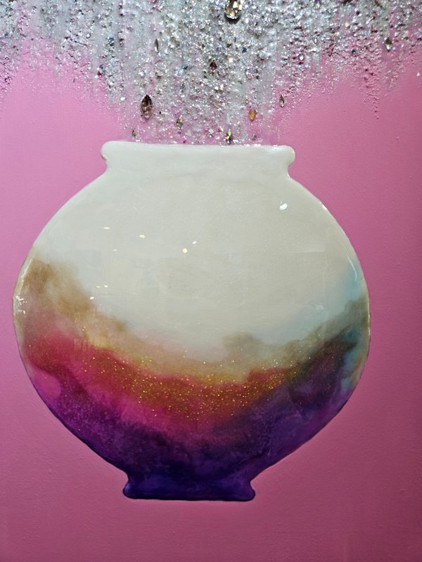 안현 작가는 레진과 다양한 혼합 재료들을 사용해 자연이 만들어내는 우연한 아름다움을 환상적인 빛깔로 표현한다. 작품을 구성하는 유동적인 안료의 흐름은 다른 소재와 닿아 바뀌고, 서로 뒤섞이며 더욱 다채로운 형태와 빛깔로 변화한다. 이러한 여러 요소는 우연히 얽히고 영향을 주고받으며 빛과 형태를 자연스럽고 유기적으로 그려나간다. 플루이드 아트가 가지는 이러한 우연성은 작가가 전하고자 하는 자연의 찬란한 순간을 더욱 극적으로 그려낸다. 그의 영감은 아름다운 풍광을 멀리서 관찰하거나 반대로 세부적으로 들여다보는 데에서 비롯된다. 찰나에 포착된 생명력과 역동성은 빛을 품을 수 있는 글리터, 자개, 천연석, 유리 등의 재료들을 통해 더욱 생동감 있게 구현된다. 안현 작가는 자연을 보며 느낀 심상을 작품으로 표현하면서 자신의 가장 어두운 시기를 구원받았다고 말한다. 작가는 인간의 재주로는 만들어낼 수 없는 자연만이 가진 치유의 힘에 다가가고자 노력하며, 자신이 받은 희망과 기쁨을 나누며 우리 또한 빛나는 존재임을 잊지 않기를 바라고 있다.