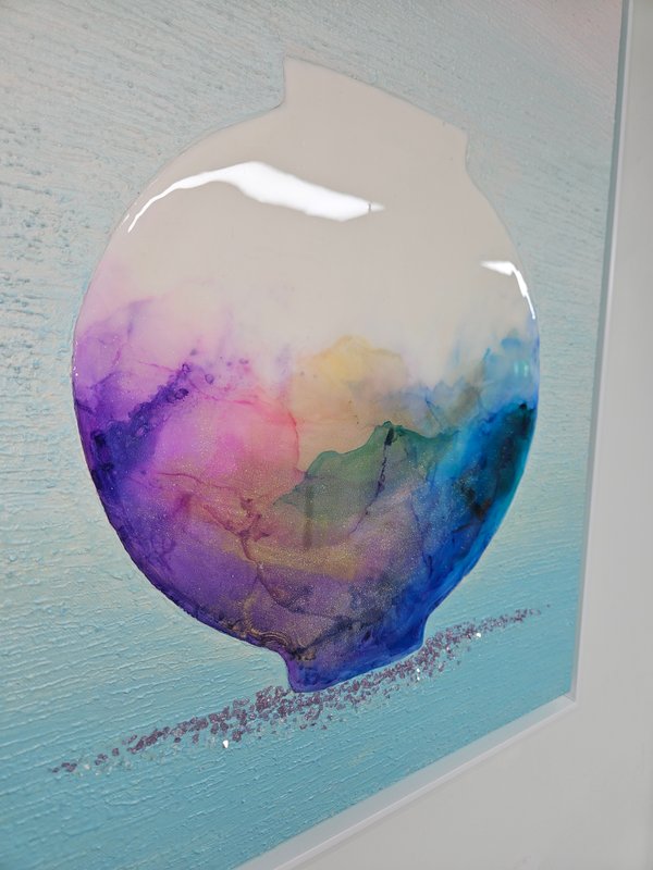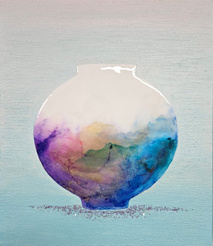안현 작가는 레진과 다양한 혼합 재료들을 사용해 자연이 만들어내는 우연한 아름다움을 환상적인 빛깔로 표현한다. 작품을 구성하는 유동적인 안료의 흐름은 다른 소재와 닿아 바뀌고, 서로 뒤섞이며 더욱 다채로운 형태와 빛깔로 변화한다. 이러한 여러 요소는 우연히 얽히고 영향을 주고받으며 빛과 형태를 자연스럽고 유기적으로 그려나간다. 플루이드 아트가 가지는 이러한 우연성은 작가가 전하고자 하는 자연의 찬란한 순간을 더욱 극적으로 그려낸다. 그의 영감은 아름다운 풍광을 멀리서 관찰하거나 반대로 세부적으로 들여다보는 데에서 비롯된다. 찰나에 포착된 생명력과 역동성은 빛을 품을 수 있는 글리터, 자개, 천연석, 유리 등의 재료들을 통해 더욱 생동감 있게 구현된다. 안현 작가는 자연을 보며 느낀 심상을 작품으로 표현하면서 자신의 가장 어두운 시기를 구원받았다고 말한다. 작가는 인간의 재주로는 만들어낼 수 없는 자연만이 가진 치유의 힘에 다가가고자 노력하며, 자신이 받은 희망과 기쁨을 나누며 우리 또한 빛나는 존재임을 잊지 않기를 바라고 있다.