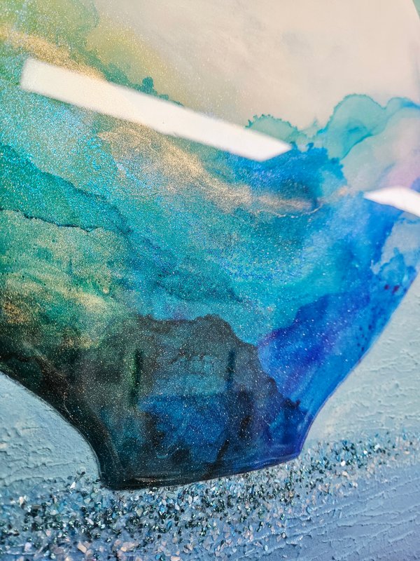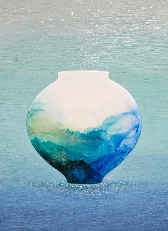 안현 작가는 레진과 다양한 혼합 재료들을 사용해 자연이 만들어내는 우연한 아름다움을 환상적인 빛깔로 표현한다. 작품을 구성하는 유동적인 안료의 흐름은 다른 소재와 닿아 바뀌고, 서로 뒤섞이며 더욱 다채로운 형태와 빛깔로 변화한다. 이러한 여러 요소는 우연히 얽히고 영향을 주고받으며 빛과 형태를 자연스럽고 유기적으로 그려나간다. 플루이드 아트가 가지는 이러한 우연성은 작가가 전하고자 하는 자연의 찬란한 순간을 더욱 극적으로 그려낸다. 그의 영감은 아름다운 풍광을 멀리서 관찰하거나 반대로 세부적으로 들여다보는 데에서 비롯된다. 찰나에 포착된 생명력과 역동성은 빛을 품을 수 있는 글리터, 자개, 천연석, 유리 등의 재료들을 통해 더욱 생동감 있게 구현된다. 안현 작가는 자연을 보며 느낀 심상을 작품으로 표현하면서 자신의 가장 어두운 시기를 구원받았다고 말한다. 작가는 인간의 재주로는 만들어낼 수 없는 자연만이 가진 치유의 힘에 다가가고자 노력하며, 자신이 받은 희망과 기쁨을 나누며 우리 또한 빛나는 존재임을 잊지 않기를 바라고 있다.