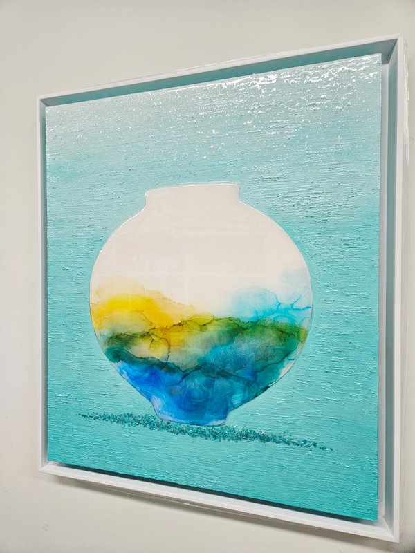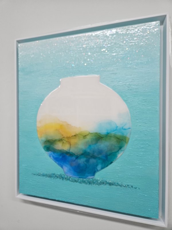 안현 작가는 레진과 다양한 혼합 재료들을 사용해 자연이 만들어내는 우연한 아름다움을 환상적인 빛깔로 표현한다. 작품을 구성하는 유동적인 안료의 흐름은 다른 소재와 닿아 바뀌고, 서로 뒤섞이며 더욱 다채로운 형태와 빛깔로 변화한다. 이러한 여러 요소는 우연히 얽히고 영향을 주고받으며 빛과 형태를 자연스럽고 유기적으로 그려나간다. 플루이드 아트가 가지는 이러한 우연성은 작가가 전하고자 하는 자연의 찬란한 순간을 더욱 극적으로 그려낸다. 그의 영감은 아름다운 풍광을 멀리서 관찰하거나 반대로 세부적으로 들여다보는 데에서 비롯된다. 찰나에 포착된 생명력과 역동성은 빛을 품을 수 있는 글리터, 자개, 천연석, 유리 등의 재료들을 통해 더욱 생동감 있게 구현된다. 안현 작가는 자연을 보며 느낀 심상을 작품으로 표현하면서 자신의 가장 어두운 시기를 구원받았다고 말한다. 작가는 인간의 재주로는 만들어낼 수 없는 자연만이 가진 치유의 힘에 다가가고자 노력하며, 자신이 받은 희망과 기쁨을 나누며 우리 또한 빛나는 존재임을 잊지 않기를 바라고 있다.