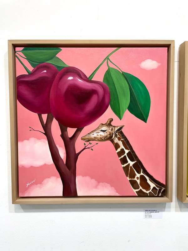 김경아 작가는 독특한 형상의 나무와 동물들을 통해 다양한 관계 속 사랑과 소통의 가치를 전하고 있다. 작가의 작품은 사랑에 대한 표현이 서툴렀던 경험과, 사랑을 ‘받는 것’의 중요성을 인식함에서 비롯되었다. 작가는 주변의 사랑을 받아들인 자신의 정체성을 나무로 표현하여, 관계 속 사랑이 가지는 힘과 긍정적 영향력을 은유적으로 형상화한다. 과거 단조로웠던 나무는 동물들, 즉 주변 관계의 사랑을 양분으로 강렬한 색감과 풍성한 열매를 품은 존재로 자라난다. 유화를 활용한 깊고 맑은 색채감이 돋보이는 그녀의 작업은, 작품 속 자연의 존재들과 어우러져 감상자에게 밝고 따듯한 '사랑'의 심상을 전한다. 작품에 종종 등장하는 큰 하트와 작은 하트가 삶 속에서 크고 작은 사랑의 관계를 나타내듯, 사랑은 생각보다 쉽게 주변에 존재한다. 그녀는 모든 사람들이 각기 다른 모습으로 사랑을 나누고 연결될 수 있음을 강조하며, '사랑의 선순환'을 주제로 솔직한 고백을 전한다. 상상력과 사랑으로 빚어낸 세상을 통해 보는 이들 모두가 각자의 방식으로 사랑의 메시지를 발견하게 되길 바란다.