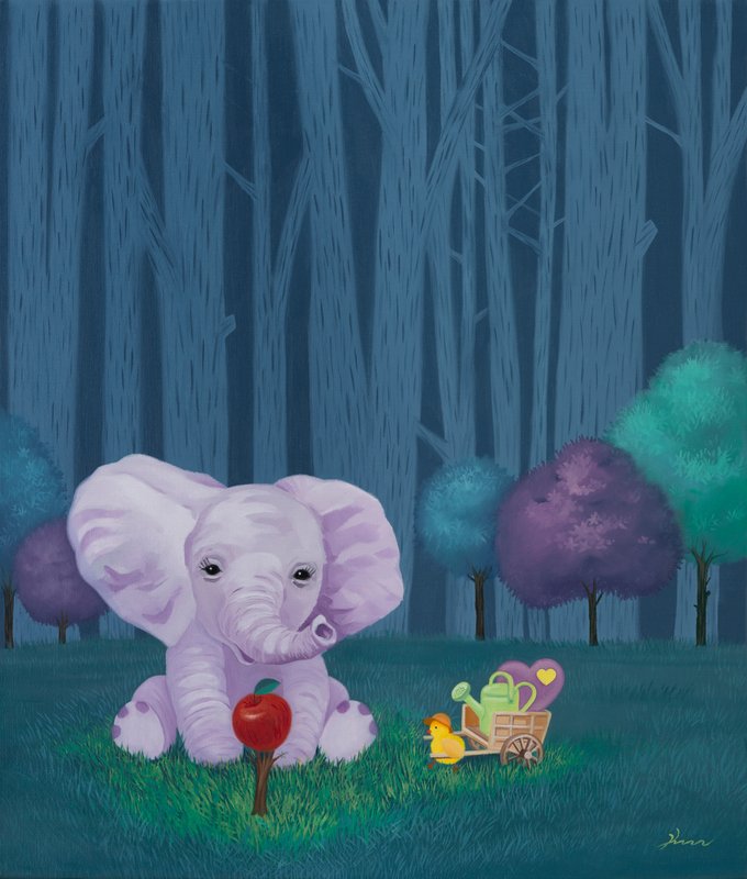 김경아 작가는 독특한 형상의 나무와 동물들을 통해 다양한 관계 속 사랑과 소통의 가치를 전하고 있다. 작가의 작품은 사랑에 대한 표현이 서툴렀던 경험과, 사랑을 ‘받는 것’의 중요성을 인식함에서 비롯되었다. 작가는 주변의 사랑을 받아들인 자신의 정체성을 나무로 표현하여, 관계 속 사랑이 가지는 힘과 긍정적 영향력을 은유적으로 형상화한다. 과거 단조로웠던 나무는 동물들, 즉 주변 관계의 사랑을 양분으로 강렬한 색감과 풍성한 열매를 품은 존재로 자라난다. 유화를 활용한 깊고 맑은 색채감이 돋보이는 그녀의 작업은, 작품 속 자연의 존재들과 어우러져 감상자에게 밝고 따듯한 '사랑'의 심상을 전한다. 작품에 종종 등장하는 큰 하트와 작은 하트가 삶 속에서 크고 작은 사랑의 관계를 나타내듯, 사랑은 생각보다 쉽게 주변에 존재한다. 그녀는 모든 사람들이 각기 다른 모습으로 사랑을 나누고 연결될 수 있음을 강조하며, '사랑의 선순환'을 주제로 솔직한 고백을 전한다. 상상력과 사랑으로 빚어낸 세상을 통해 보는 이들 모두가 각자의 방식으로 사랑의 메시지를 발견하게 되길 바란다.