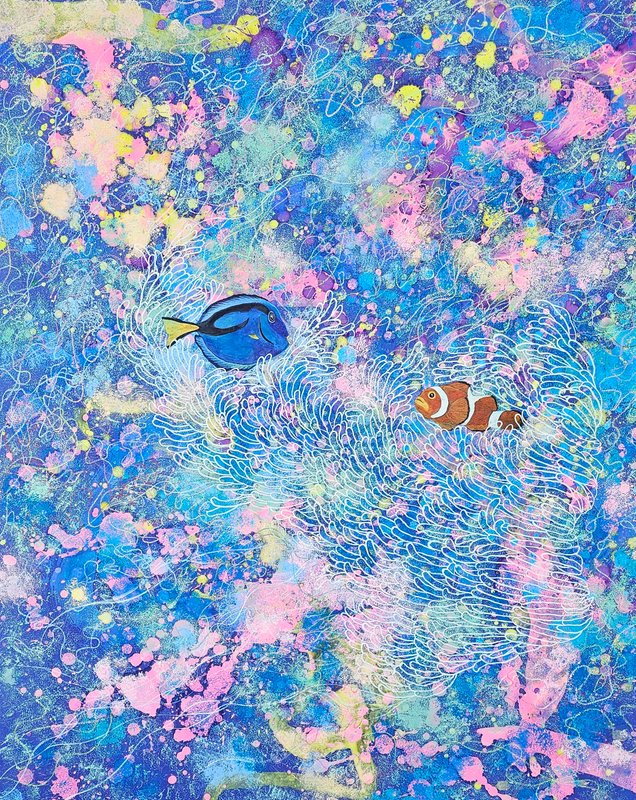 김혜원 작가는 헤어짐과 만남의 반복인 '인연'의 참 의미를 '물결 라인'이라는 작가만의 독특한 미적 언어로 풀어냅니다. 작품 속 세밀히 그려진 하얀 선들은 물결로 우리가 살아가는 인연의 이어짐과 흩어짐을 상징하며, 바다를 사랑하는 작가의 마음을 보여줍니다. 더불어 작가는 오랜 기다림을 필요로 하는 작업 방식을 통해 작품에 정화와 치유의 감정을 담아 현대인의 마음을 부드럽게 위로하는데요, 장지 위에 여러 번 색을 올리고 말리는 과정으로 완성된 작품은 눈부시게 아름다운 컬러감을 뽐내며 감상자의 미적 감각을 자극합니다. 얽혀있는 여러 관계 속에 지치셨다면, 김혜원 작가의 작품을 감상하며 물결 같은 삶의 리듬감을 찾고, 힐링하는 시간을 가져보시는 건 어떨까요?